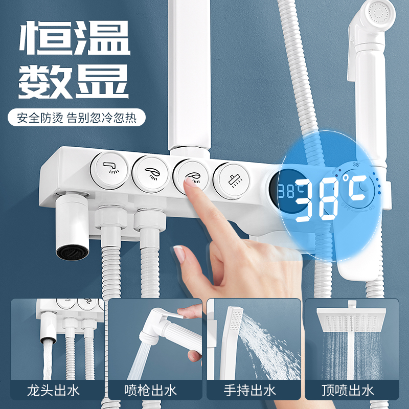 Constant temperature sprinkler suit household copper intelligent display nozzle bath shower white rain supercharged bathroom shower