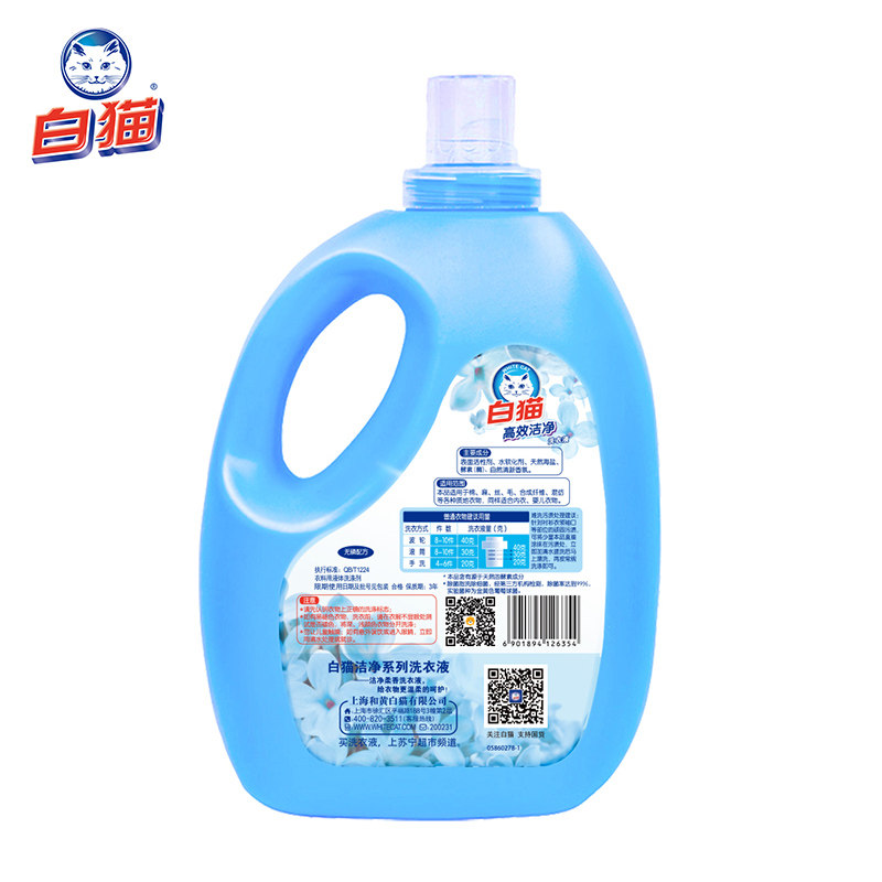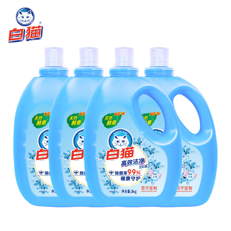 White cat phosphorus-free laundry detergent 3kg*4 bottles (natural enzyme upgrade) easy to rinse hand washing machine to wash bacteria
