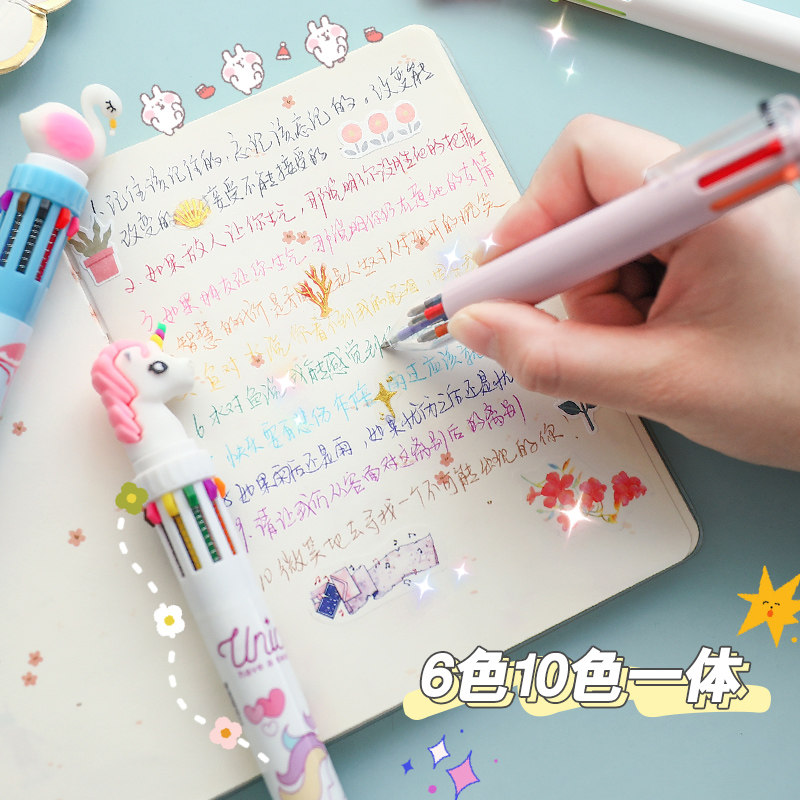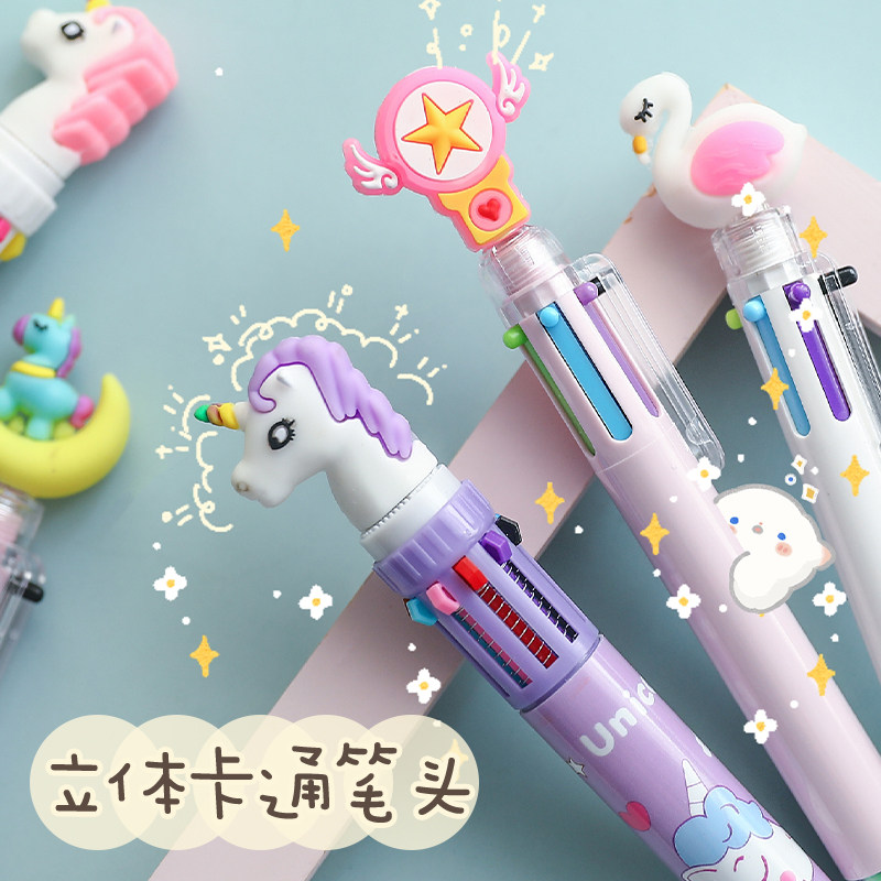 Deco ballpoint pen Cartoon cute and creative multicolored ballpoint pen Multi-color multifunction pen multicolor color pen all-in-one pen blue black red student mark number for special wholesale