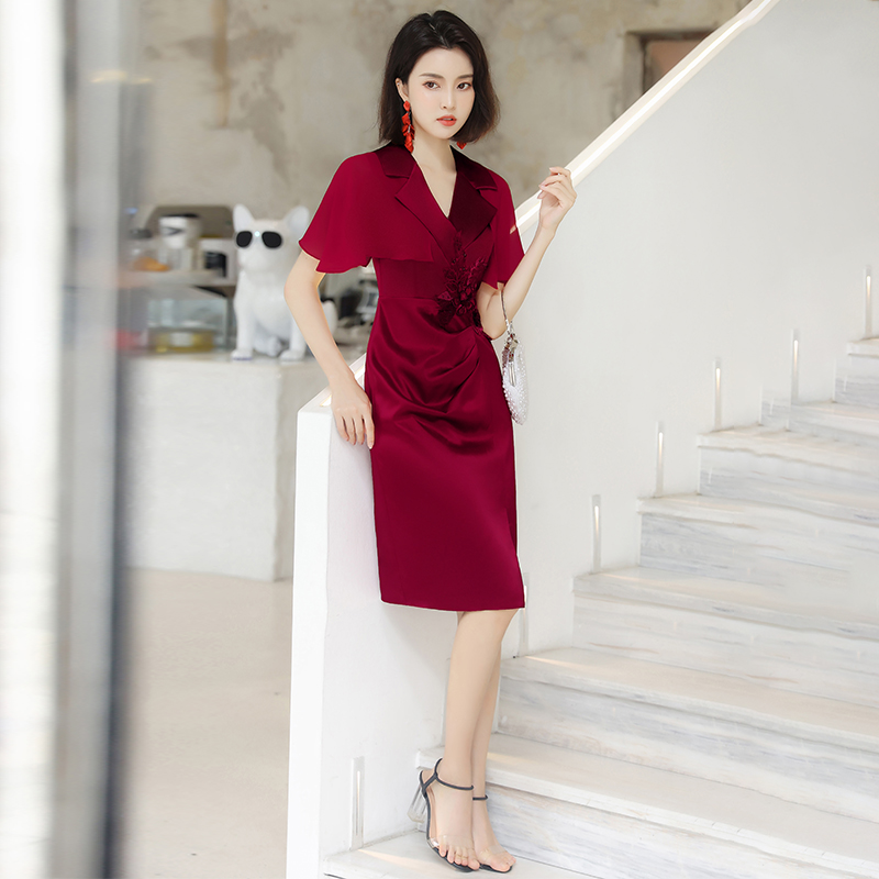 Small sublate dress dress Femininity High End Light Lavish Red shaw-up wedding parents-in-law Summer clothes can be worn normally