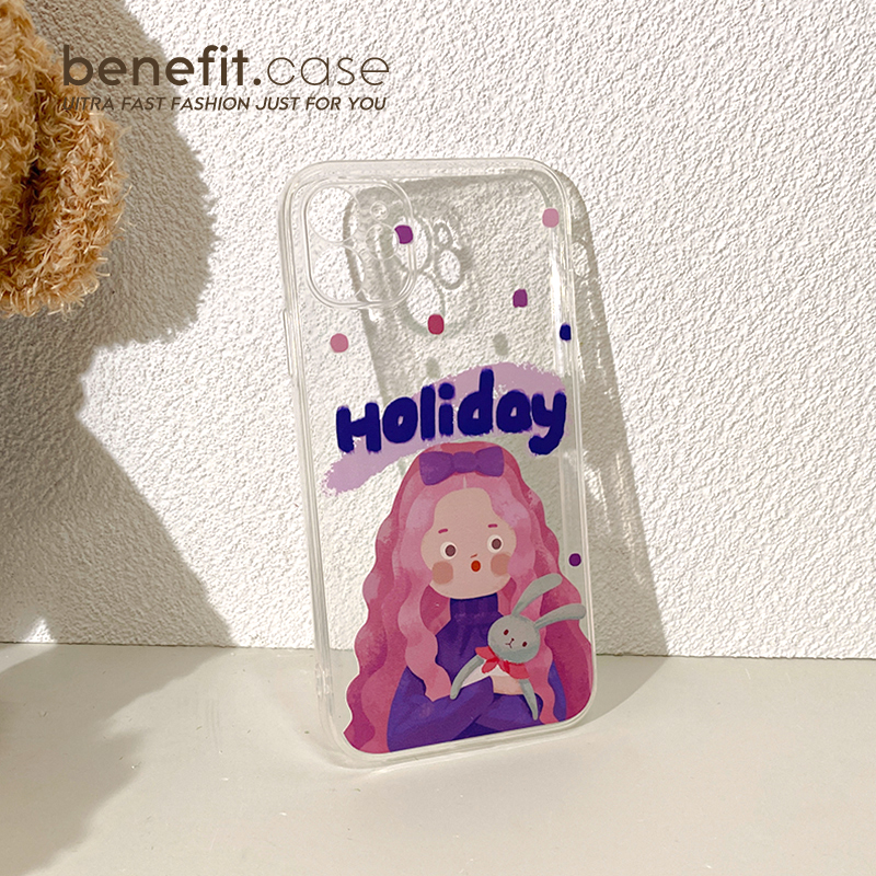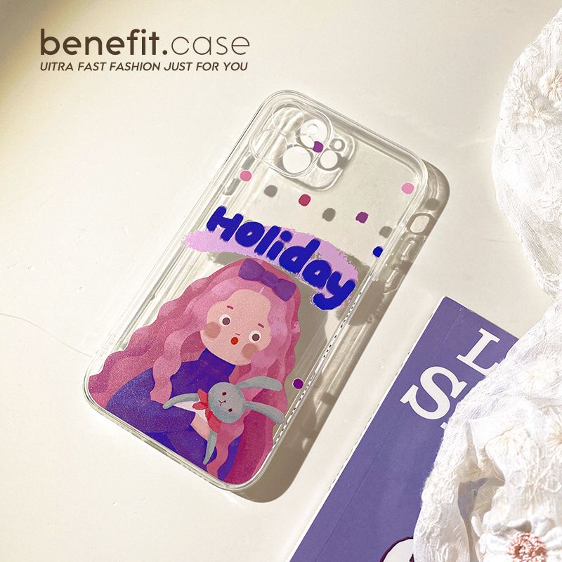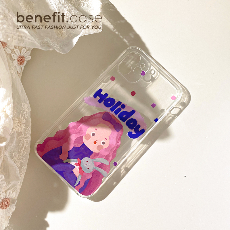 Benefit original purple girl applies Apple 13 promax mobile phone protection shell transparent iPhone 12mini cute xsmax Japanese and Korean xr art 8pl