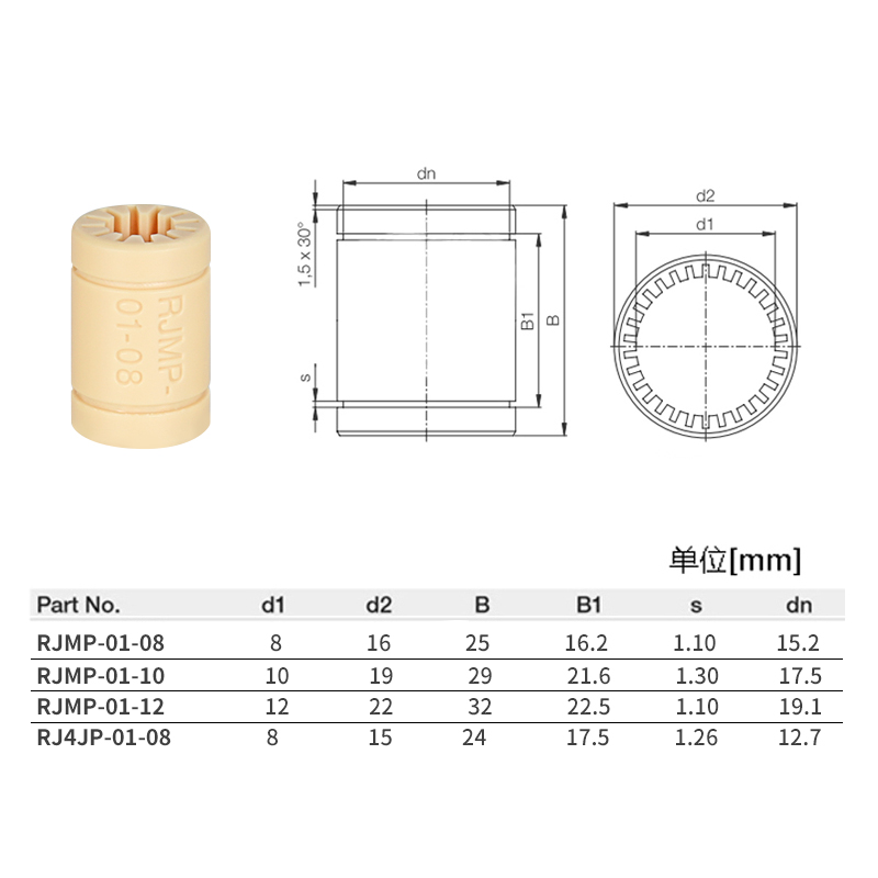 Domestic 3d printer accessories RJMP-01 full engineering plastic linear bearing RJMP inner diameter 06 08 10 12