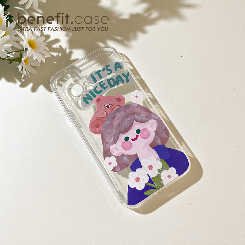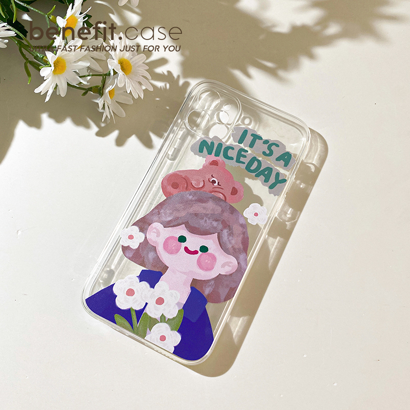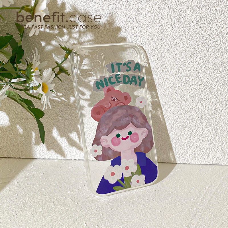 Benefit Oil Painting Flower Girl applies Apple 13promax mobile phone protection shell Japan-ROK iphone12mini cartoon xsmax original xr transparent 8pl