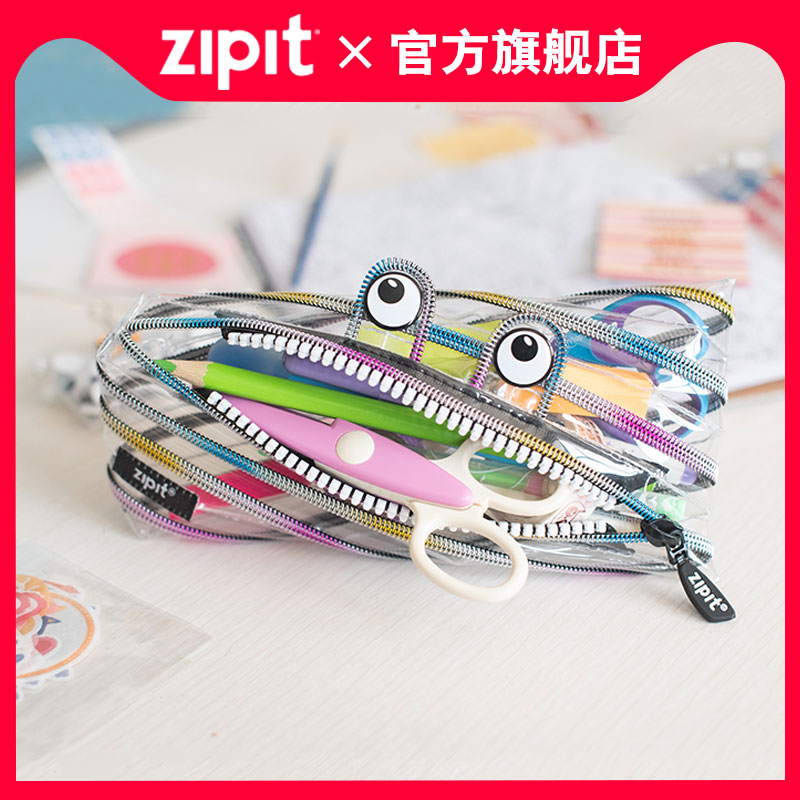 ZIPIT Classic Black Rainbow Series Laced Pen Bag Creative Student Stationery With Strange Pen Box Large Capacity Pop Kid's Pen Box Oversize Rainbow Can Be Satined