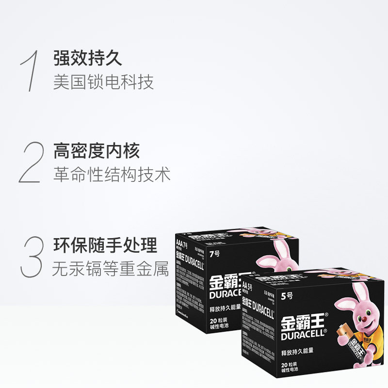 Duracell dry battery Mercury-free No 5 battery 20 tablets No 7 20 tablets alkaline long-lasting remote control alarm clock