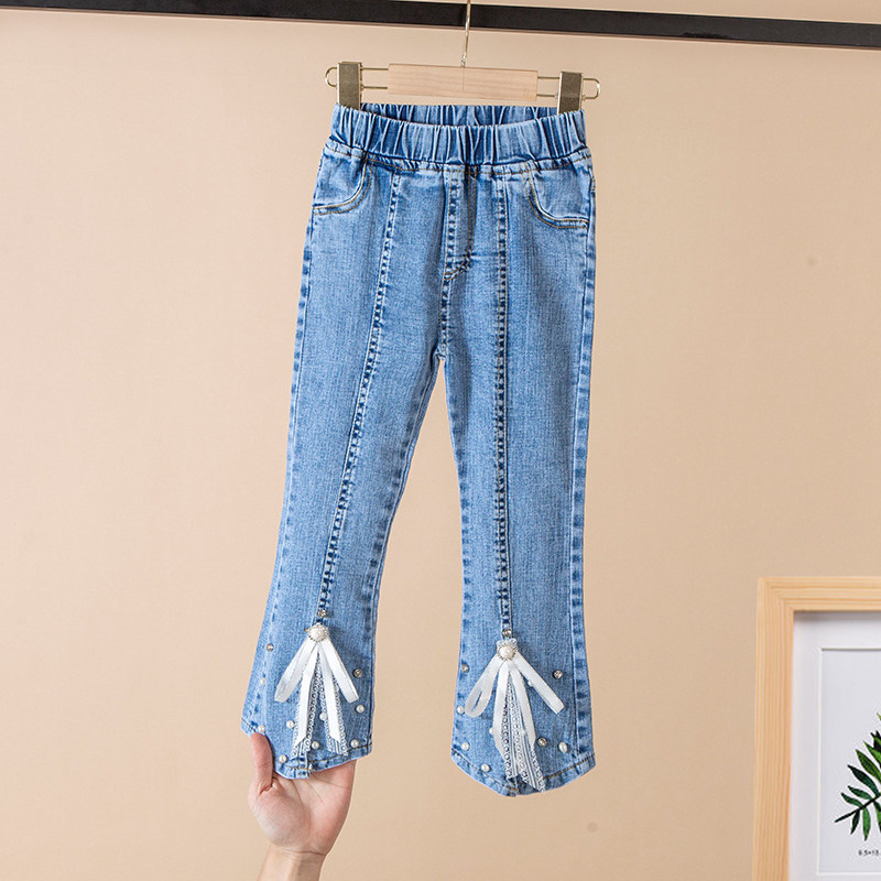 Girls' jeans spring and autumn new styles in the big children's flared pants spring and autumn foreign style female baby children's casual trousers trend