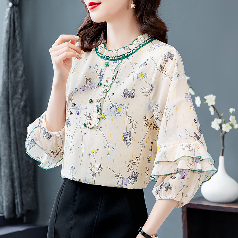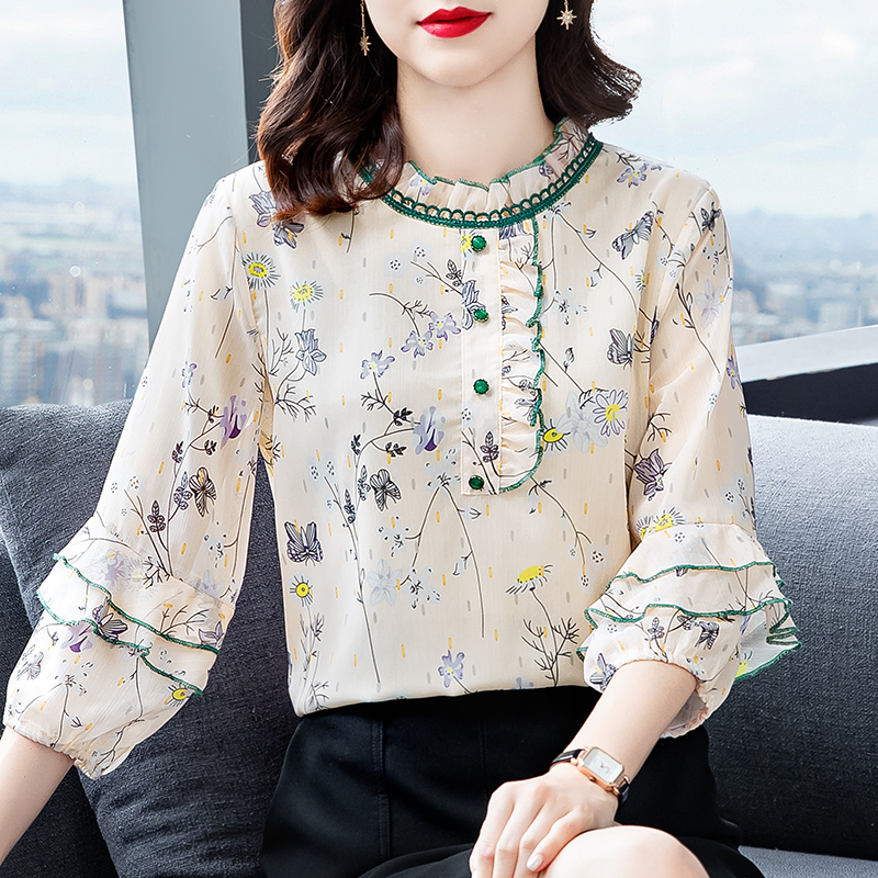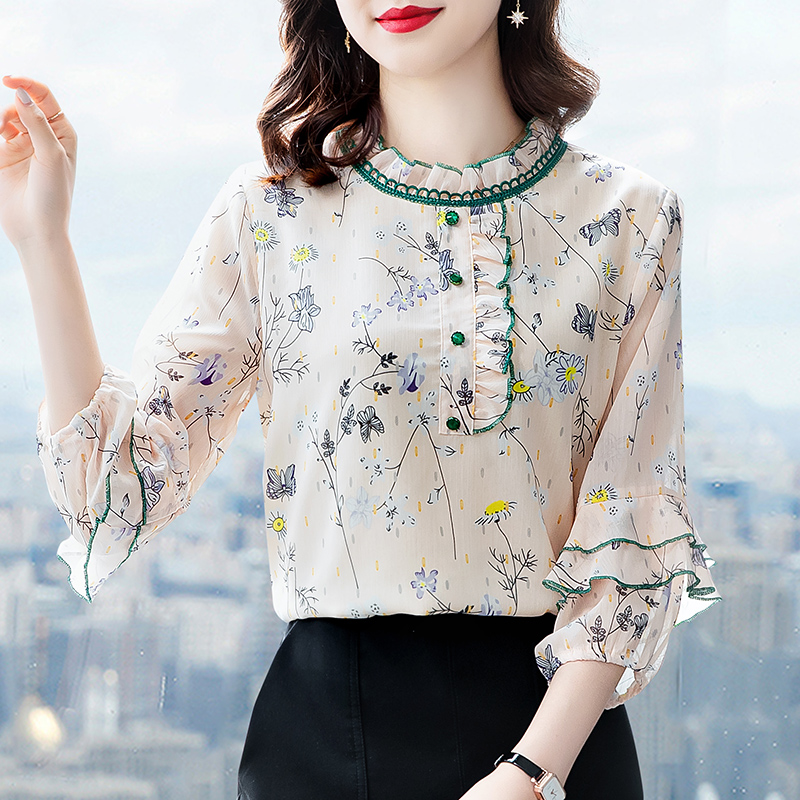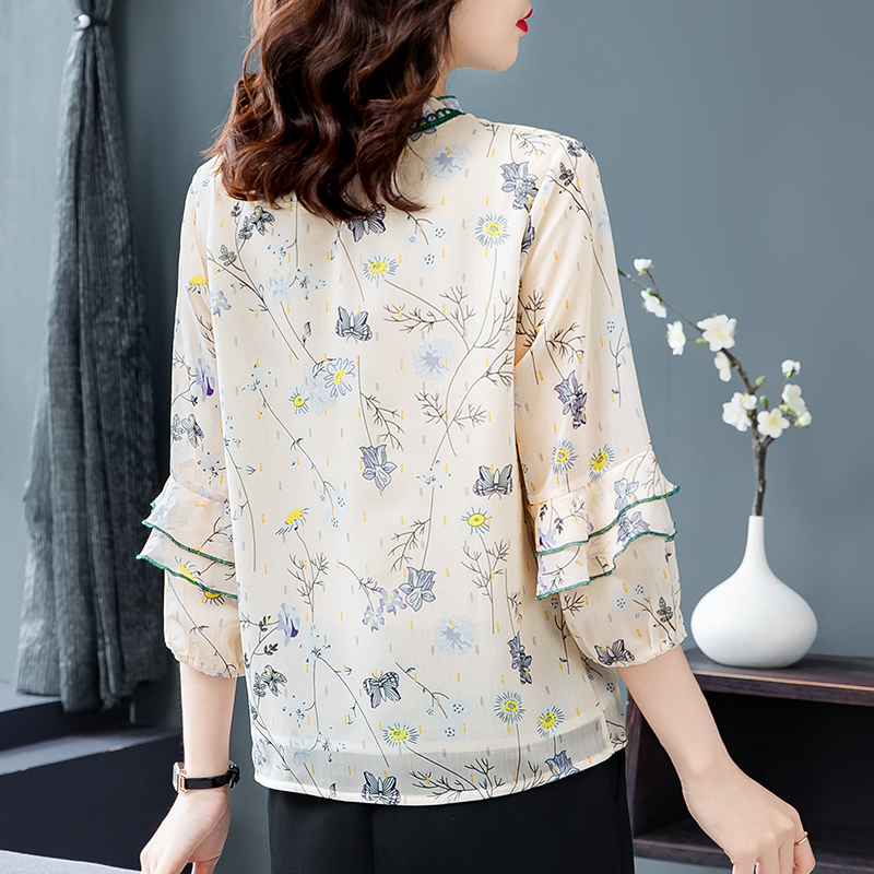 Summer dress 2022 new fashion 70% sleeves Broken Flowers Snowspun Jersey Woman Summer Foreign upscale cardiovert mom thin blouse
