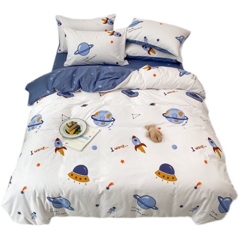 Four seasons pure cotton cartoon bedding four-piece set boy's bed linen cotton children's bed quilt cover 3-piece set
