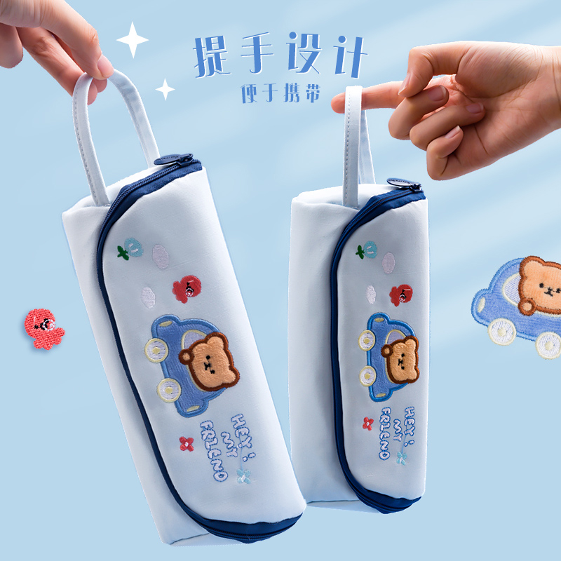 Canvas Pen Bag Cute Teenage Girl Hearts Bear Rabbit small secondary school students Stationery Kindergarten Girls' Stationery Kindergarten Girls Lead Pencil Case Brief Large Capacity Net Red Pen Bags Junior High School Stationery Bags Fresh