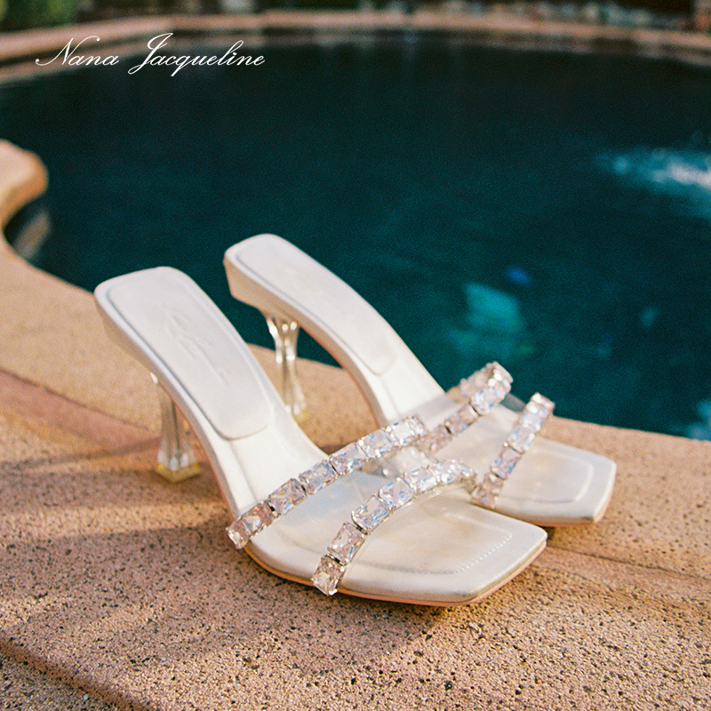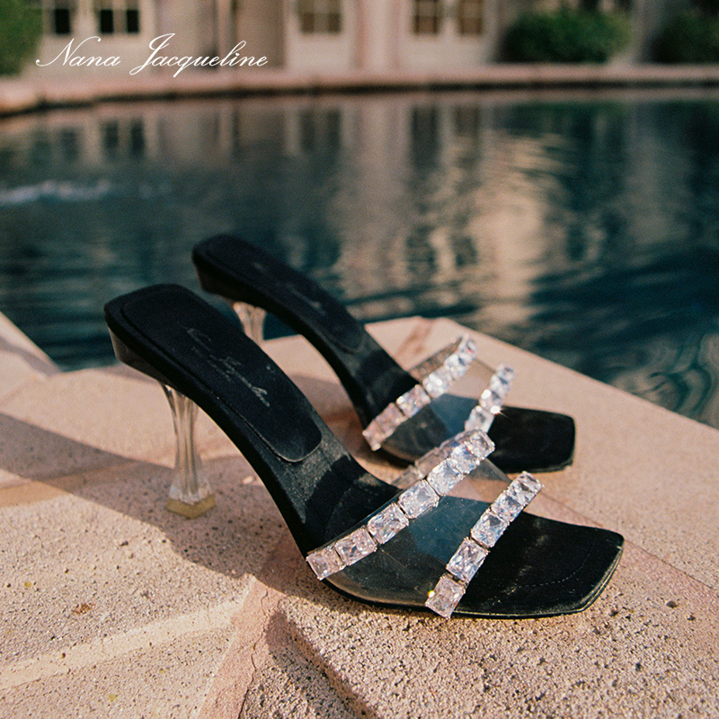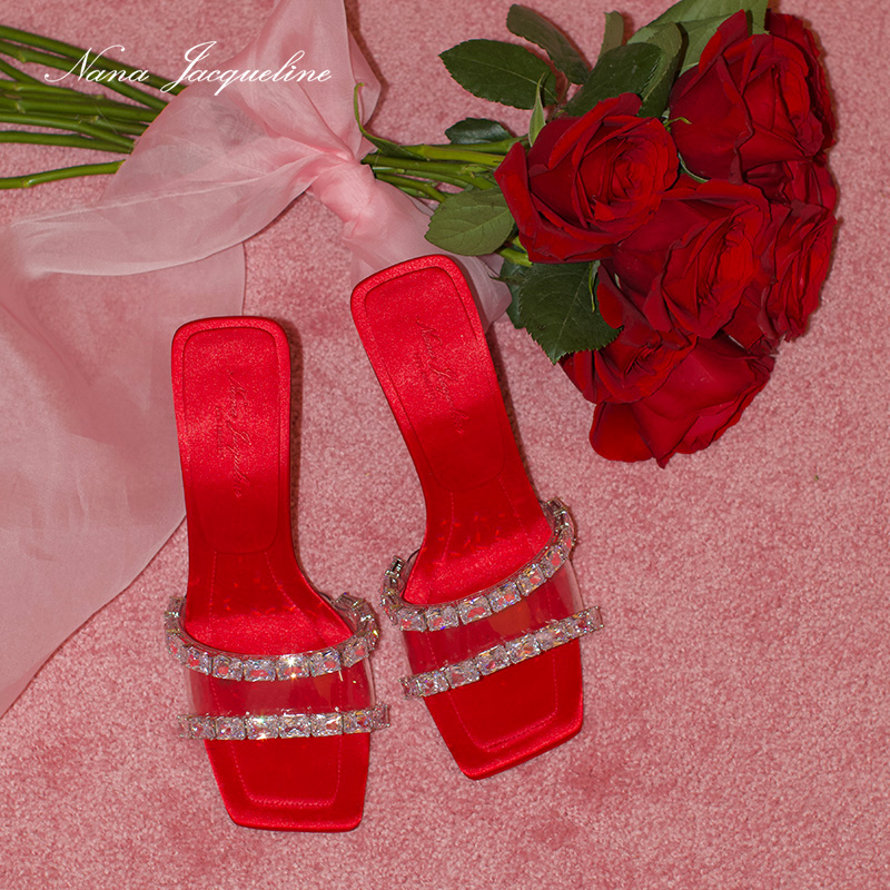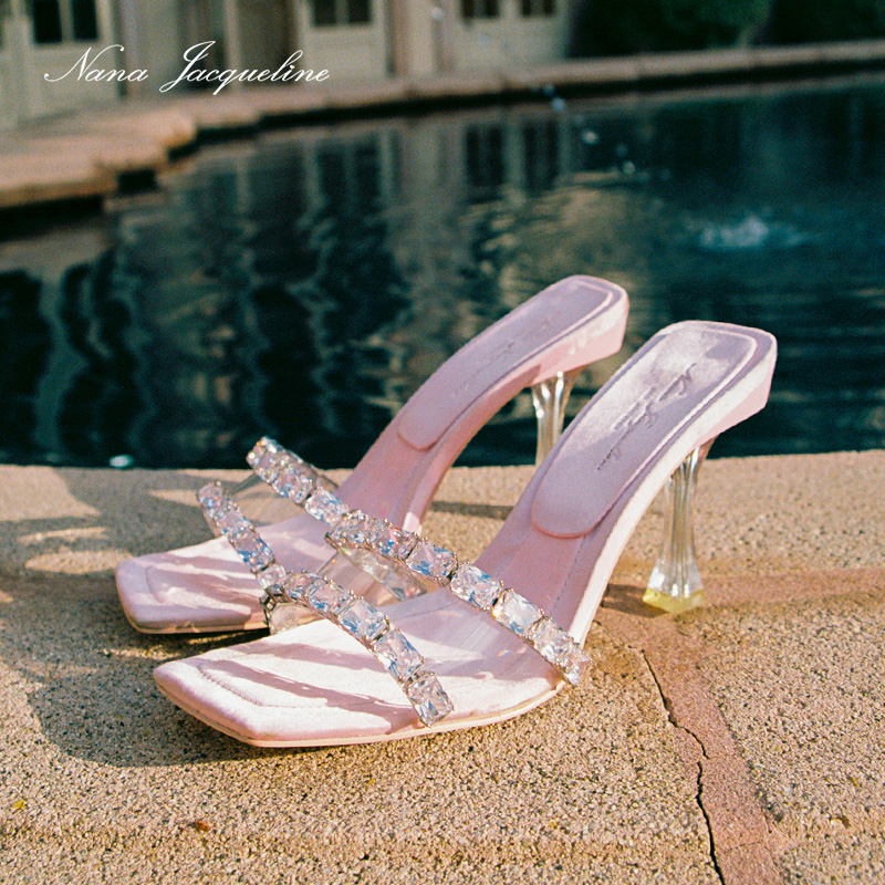 NanaJacqueline High Heel Sandals Women New Light Lavish Banquets Fashion Advanced Sensual Satin Crystal Heel Single Shoes-Taobao
