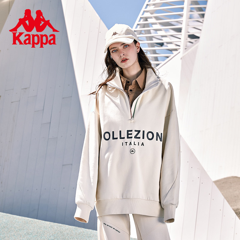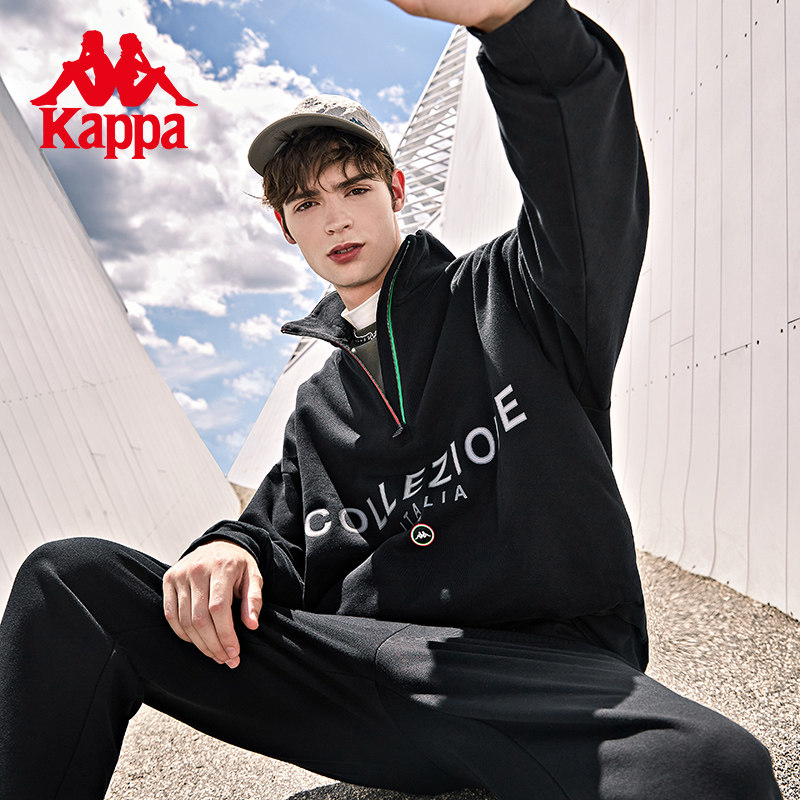 Kappa Capa velvet Sport jacket lovers men and women half-laced jacket hooded sweatshirt loose printed thick cotton T