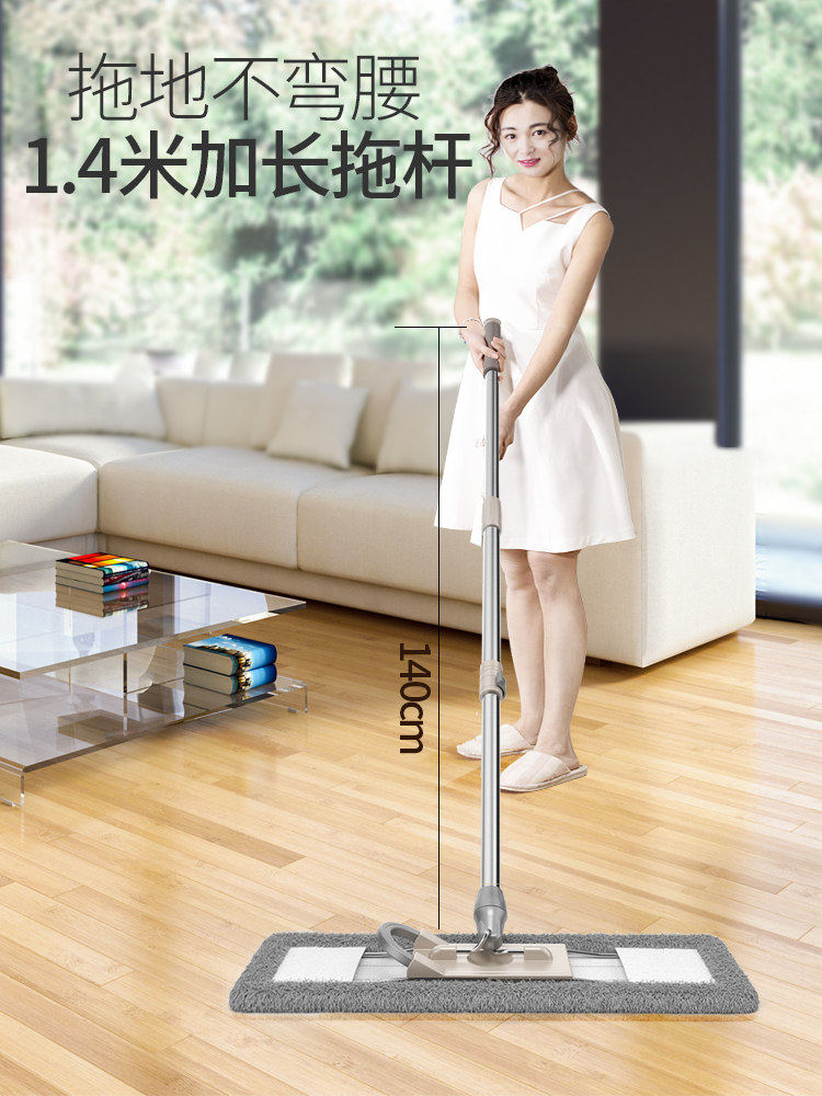 Lazy flat mop household mopping lazy mopping mop mopping wooden floor large mop free hand wash thickened mop head