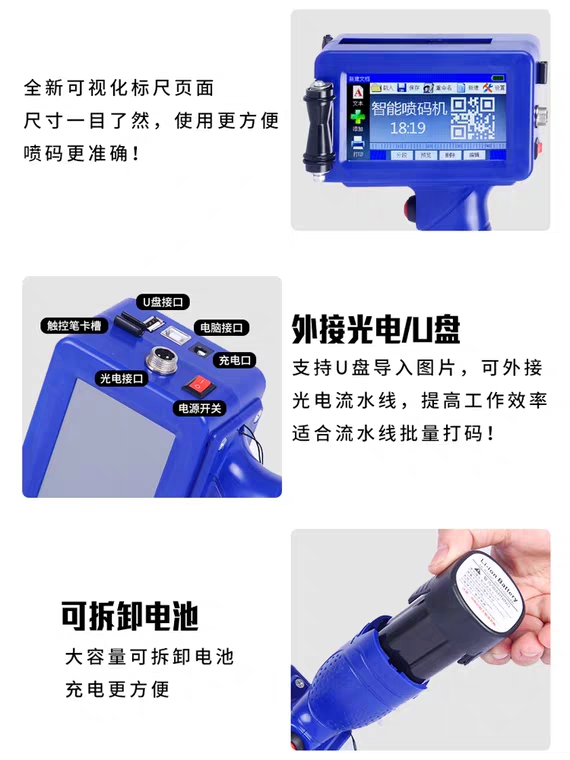 Chen million smart handheld inkjet printer M7S small production date coding machine three-line printing high-definition quick-drying