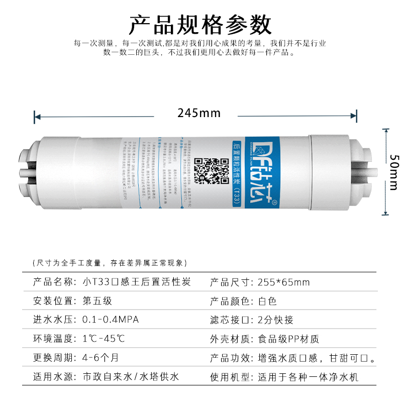 Rear Activated Carbon T33 Universal Quick Connect Cartridge Direct Drinking Water Filter Filter Water Purifier Accessories