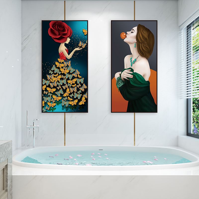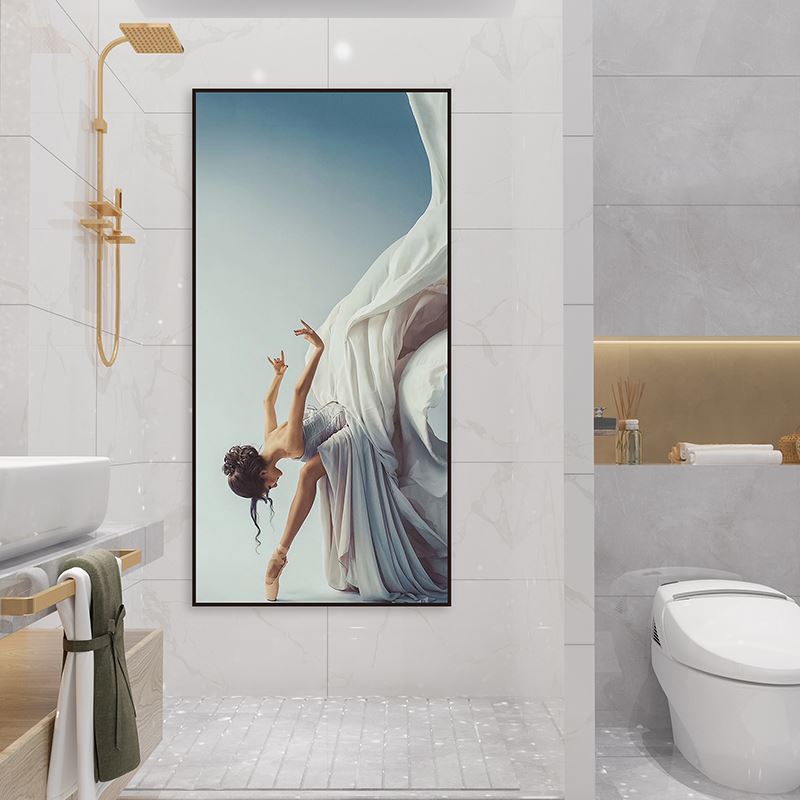 The entrance door is facing the wall with a picture of modern light luxury and advanced European 2021. The new entrance door is facing the porch mural.