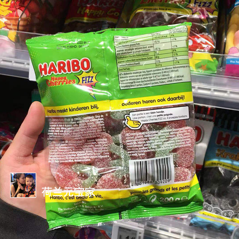 Spot Netherlands import Haribo sour powder cherry candy fruit taste sour refreshing sweet gummy 200g
