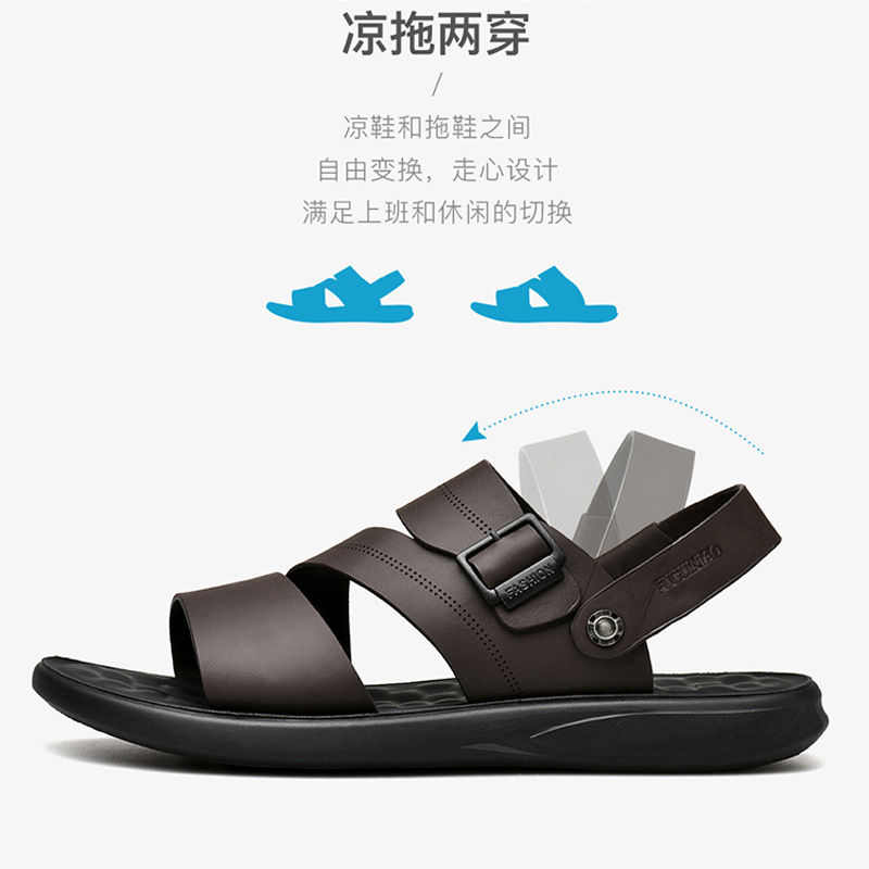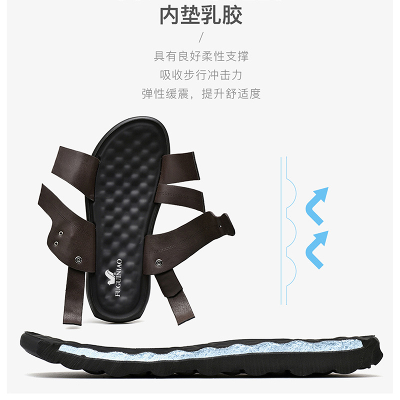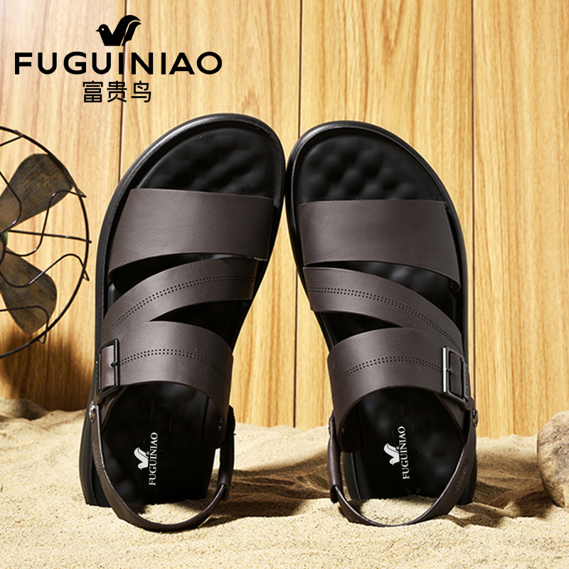Rich and bird leather sandals men's genuine leather 2022 new summer Outer wear Rome cool slippers Soft undertide men's beach shoes