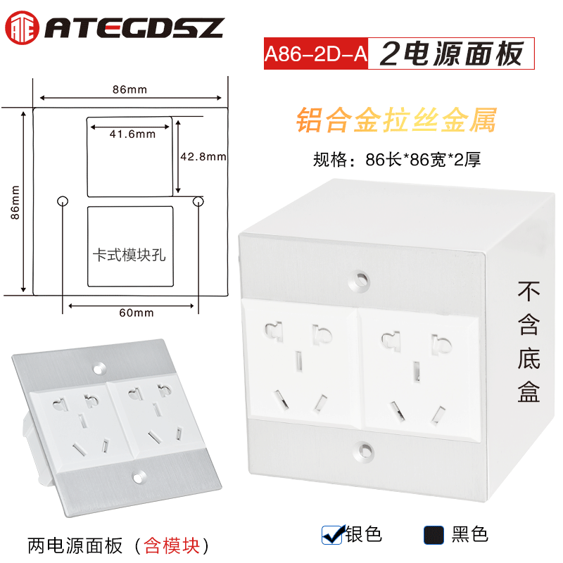 Two power supply 86 Panel-Silver color Two power supply 86 Panel-Black one power 86 Panel-Silver one power supply 86 Panel-Black 2-hole position 1 Power supply 86 Panel-Silver Color 2