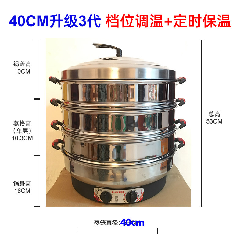 Intelligent insulated thickened stainless steel electric steam cage edible grade steamed buns corn electric steamer plug-in electric large capacity 47 inch