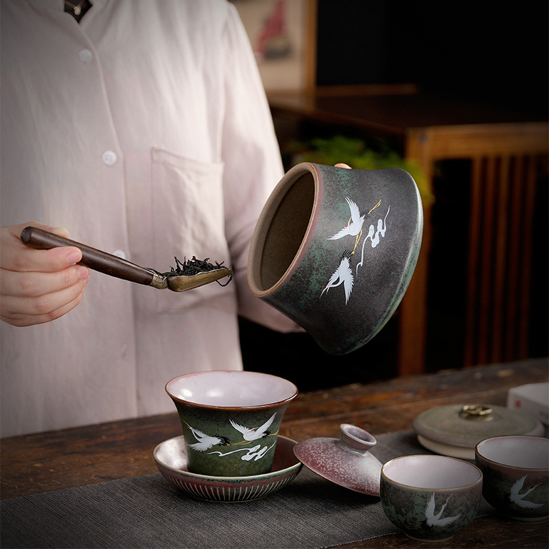 Wood-fired Crane Tea Caddy (Yundi) Wood-fired Crane Tea Caddy (Unsen)