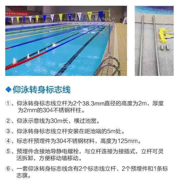 Rope (30 m) Color Flags (30 m) Embedded Pieces (2) Backstroke Sign Line (1 Set) Fouls Recall Line (1 Set) Backstroke Sign Line 2 Sets Of Fouls Recall Line 1 Set