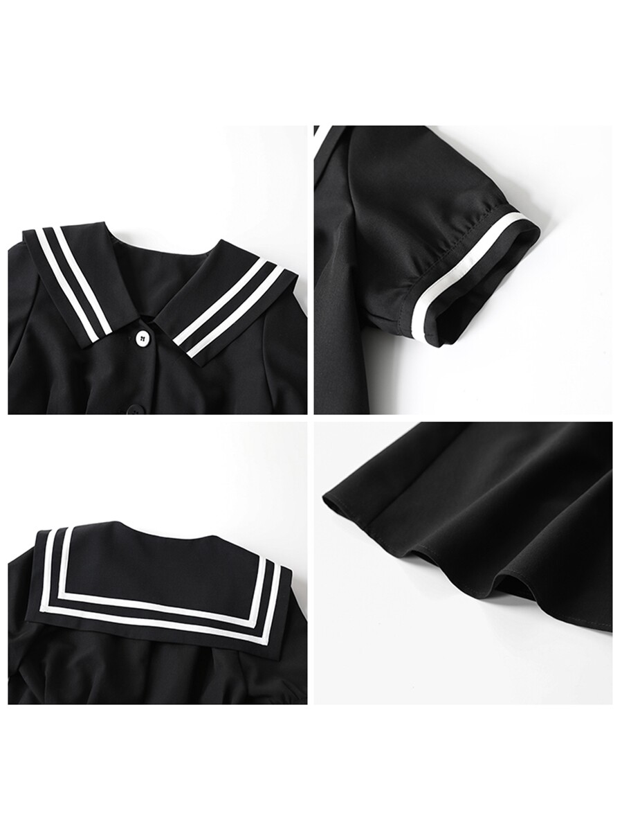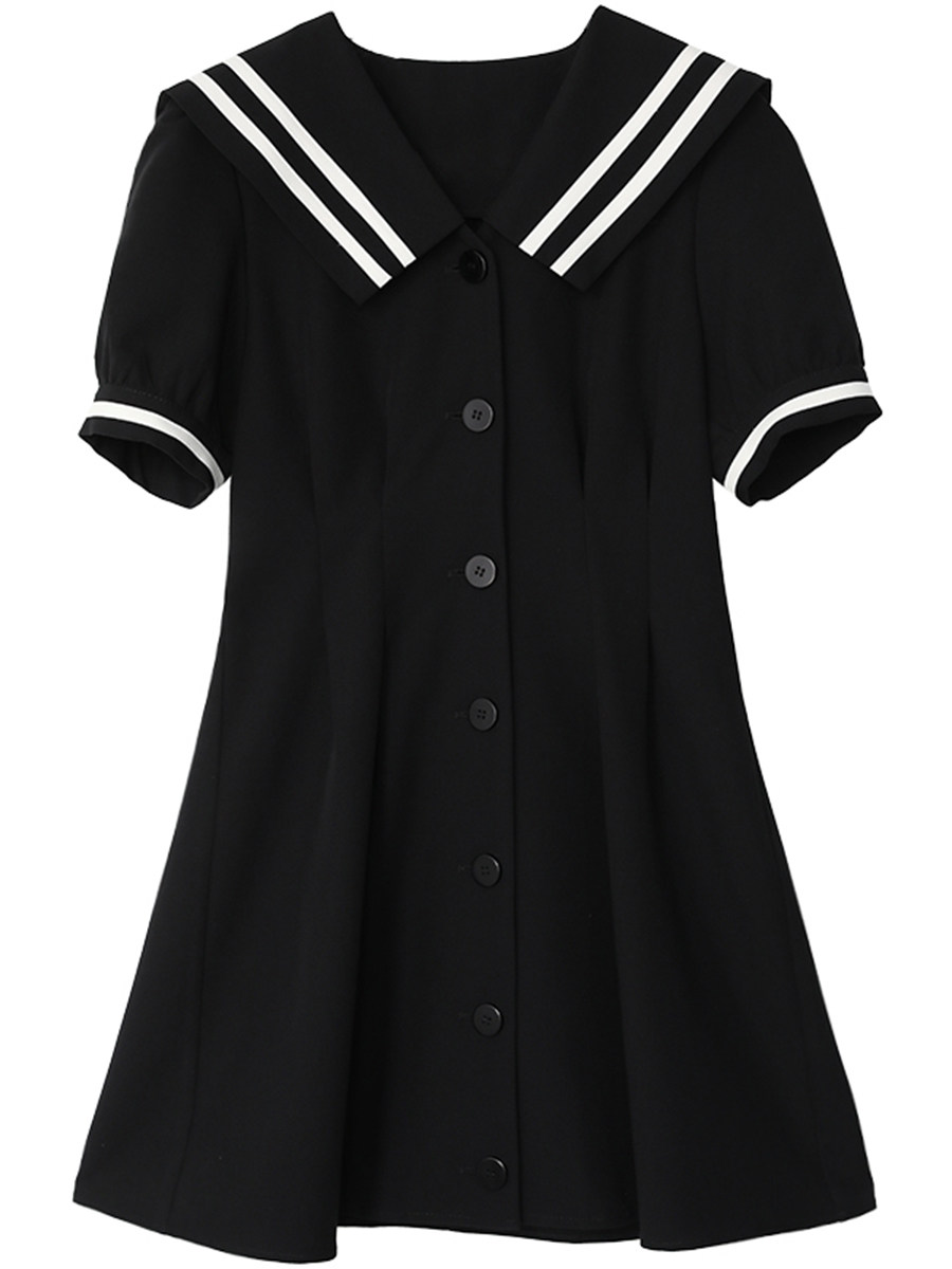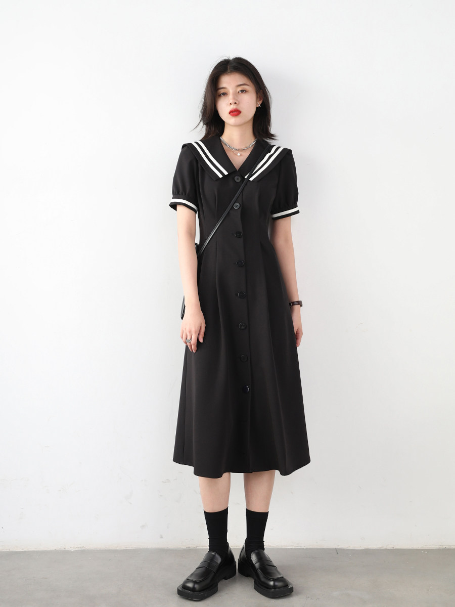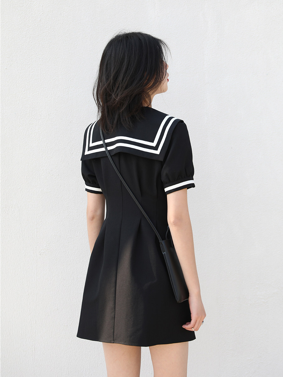Light Extravagant Retro Academy Wind V pilotage Coloured navy collar dress 2021 Summer new cashew slim fit A word skirt