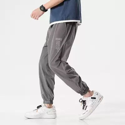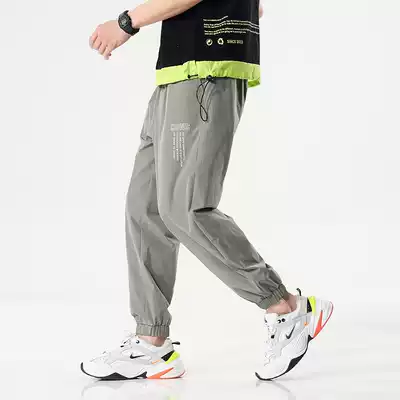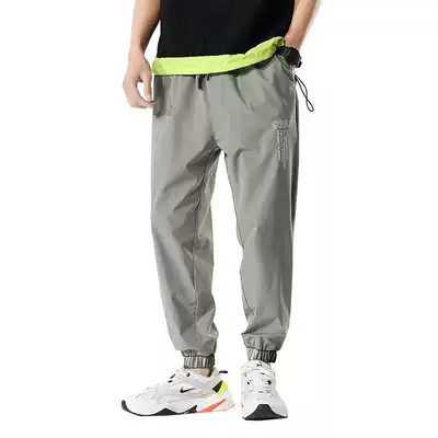 Ice silk pants Men's tide Pai Gow split pants men's summer thin loose-legged sports pants casual pants trend