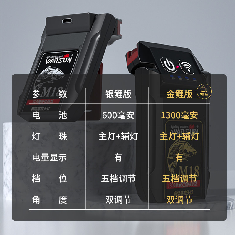 (M18 standard silver carp version) double adjustment strong light 20 hours endurance headlight component recommended (M18 enhanced golden carp version) double adjustment strong light 80 hours endurance headlight component (M18 reinforced golden carp version) double adjustment strong light 80 hours endurance + storage bag + send headlamp component (M18 reinforced golden carp version) double adjustment strong light 80 hours endurance + duck tongue cap + headlight component (M18 enhanced golden carp version) double adjustment strong light 80 hours endurance + charging head + headlight component (M18 enhanced golden carp version) double adjustment Strong light 80 hours of battery life + 3c charging head + storage bag