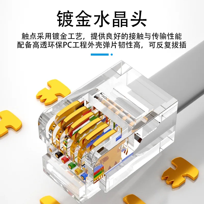 Six-core pure copper flat finished telephone line RJ11 crystal head 6 core equipment switching line signal transmission line 6P6C