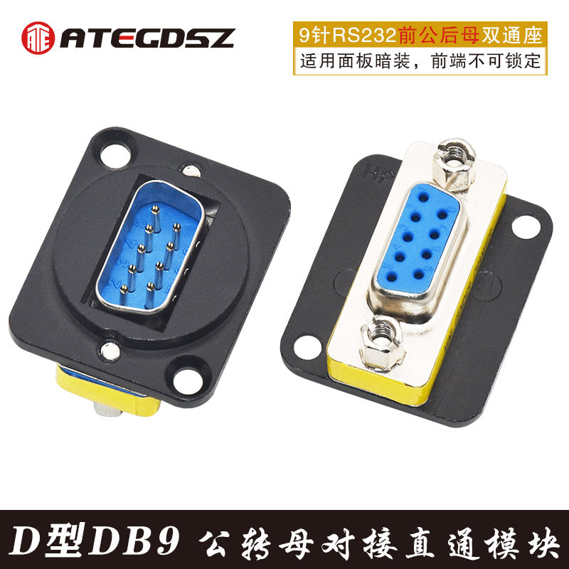 ATEGDSZ serial port RS232 socket D-type 9-pin DB9 module socket male to female gold-plated male connector ADB9MF
