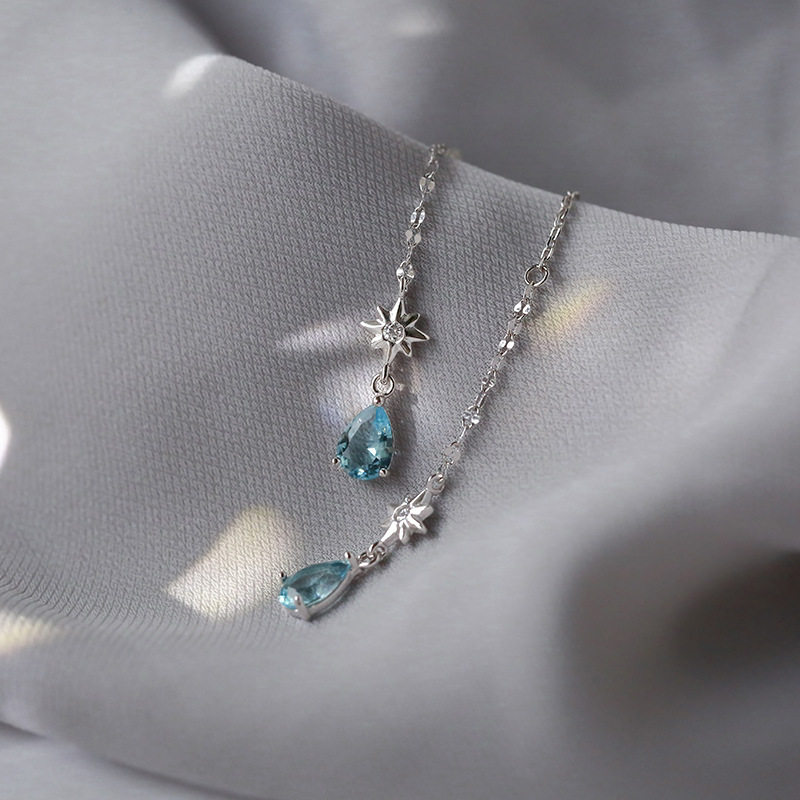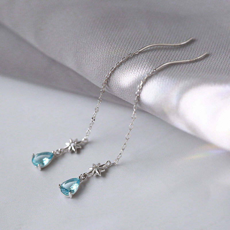 Sterling silver blue water drop earrings female temperament net red earrings summer Korean wild cold wind earrings 2020 new trend