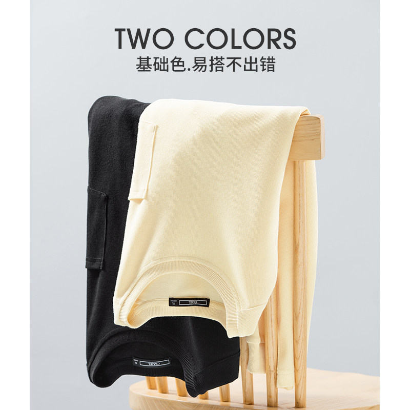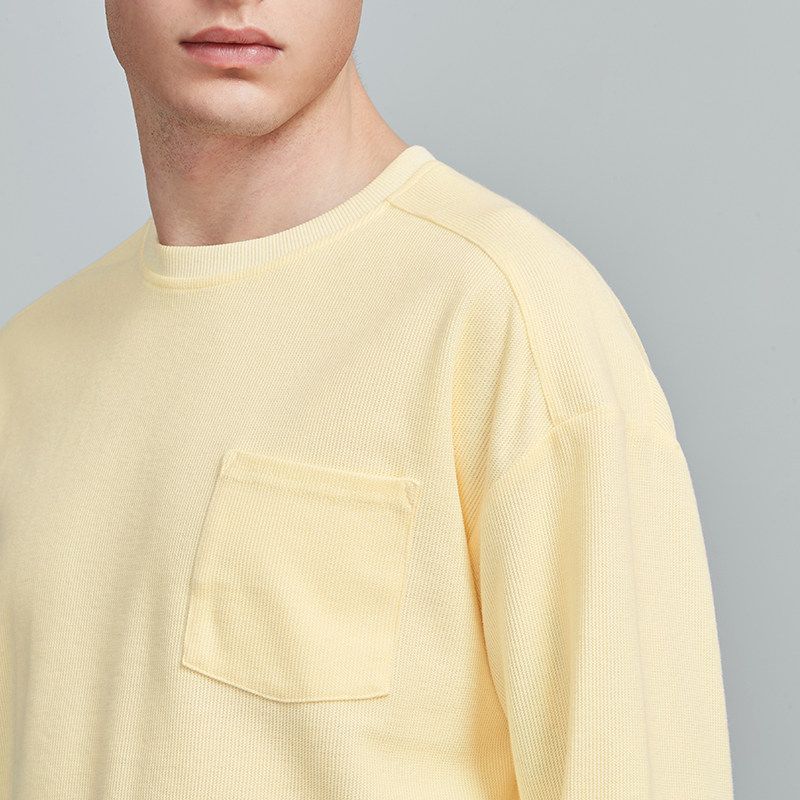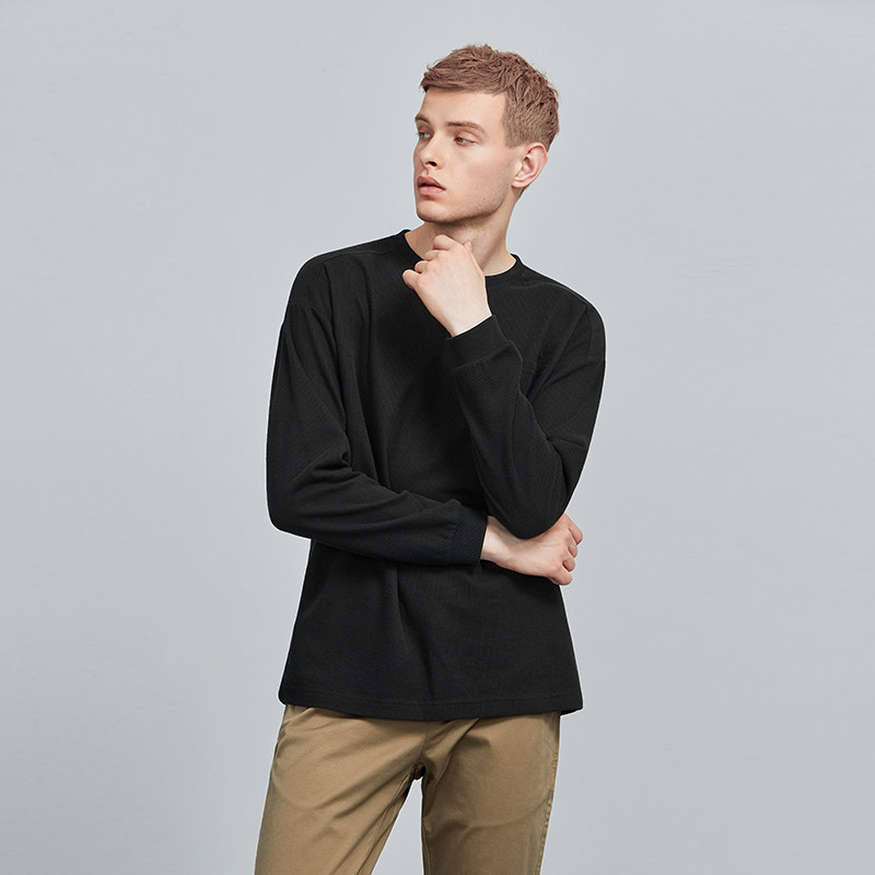 Camel mens Spring 2022 new T-shirt ribbed trim crewneck knit solid color long sleeve t-shirt tops for men
