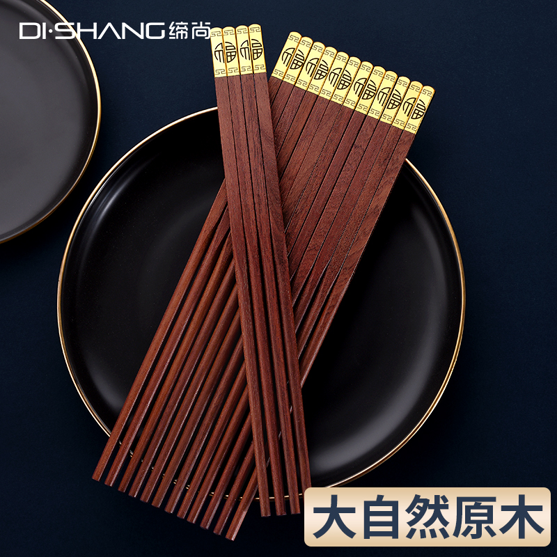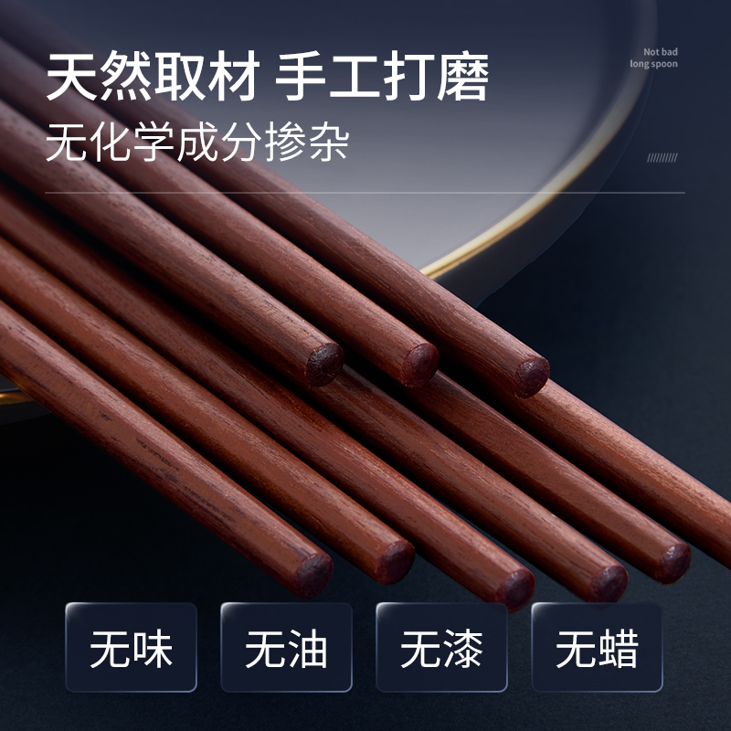 Red sandalwood chopsticks household high-end family 2021 new non-slip chicken wing wood chopsticks solid wood paint-free wax-free