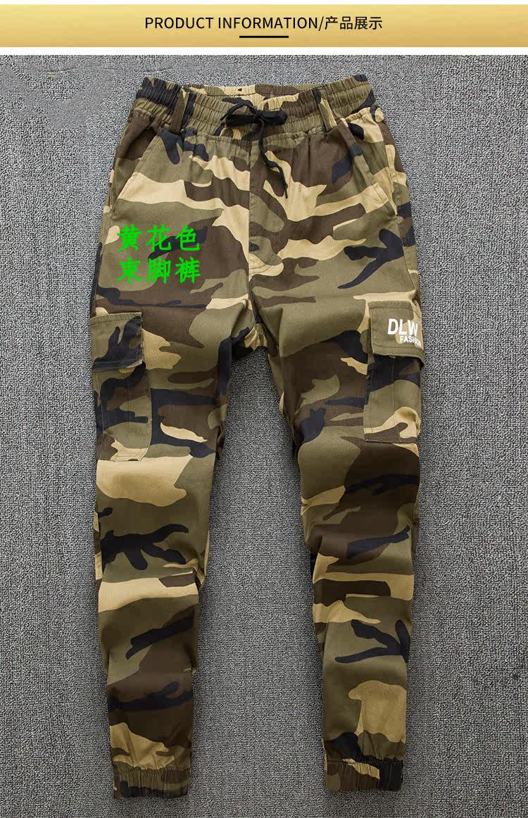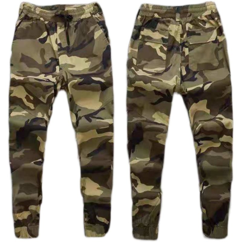 Cotton stretch camo pants Men's drawstring pants Elastic waist pants Loose wear-resistant cigarette tube pants Overalls tide work pants