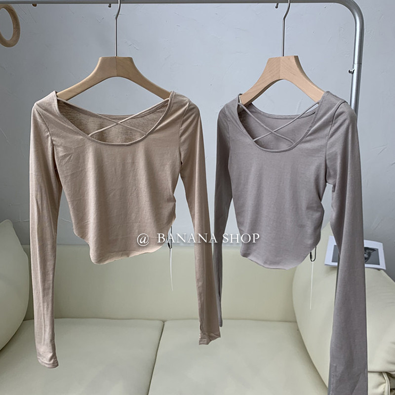 Banana Banana Cross Bottom Shirt Women's Casual Thin T-Shirt Looks Thin Versatile Fashion Sexy Top Be Careful