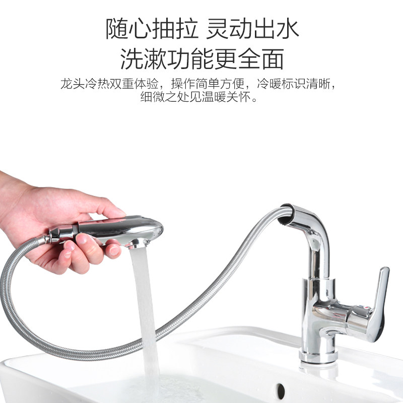 Jiumu basin pull-out faucet washbasin washbasin household hot and cold telescopic faucet 32328 32197