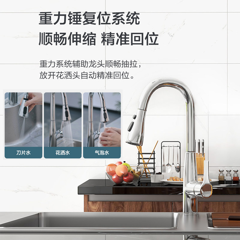 Nine-pastoral pull-out tap kitchen hot and cold water washing basin anti-base telescopic swivel three out of tap 33098