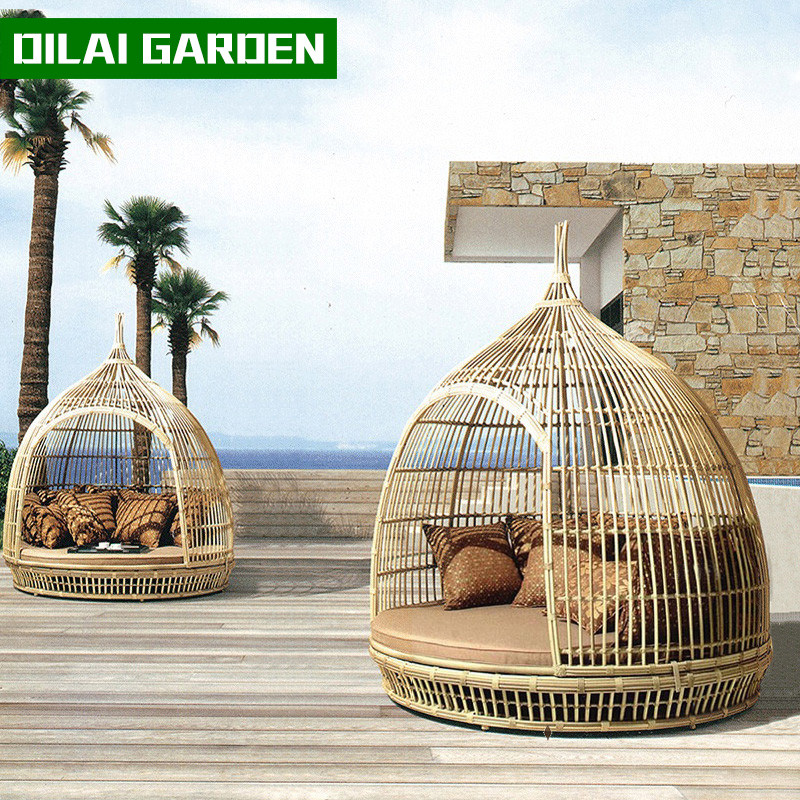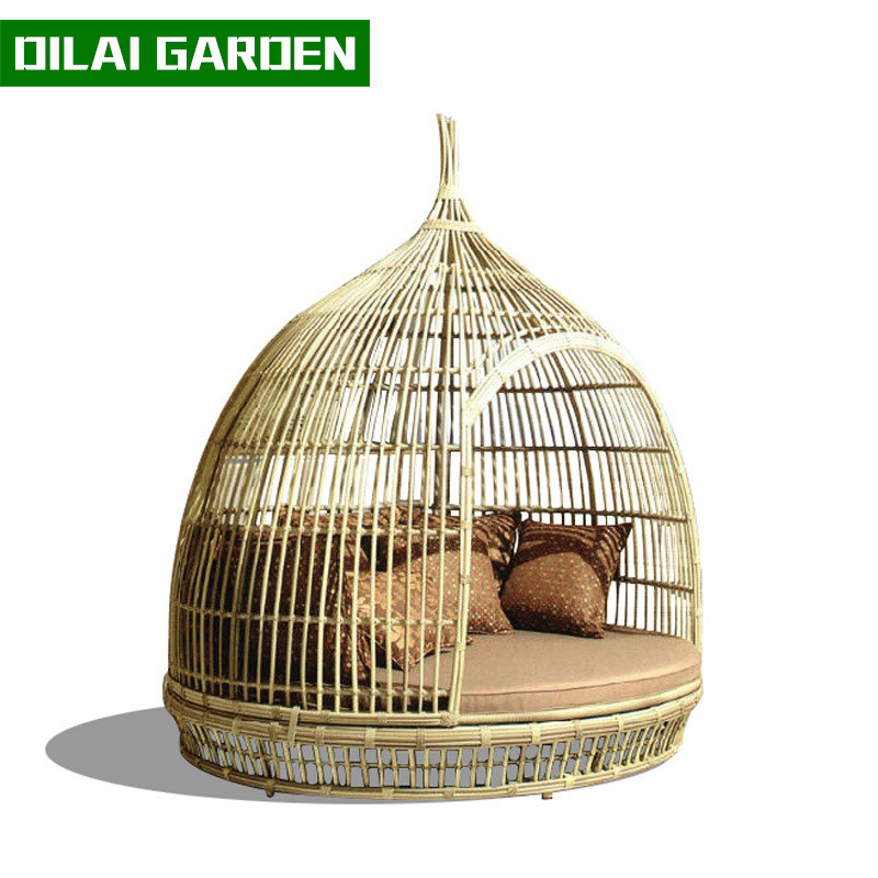 Outdoor birdcage leisure bed beach rattan sofa garden rattan chair indoor furniture rattan art round net red bird's nest lounge chair