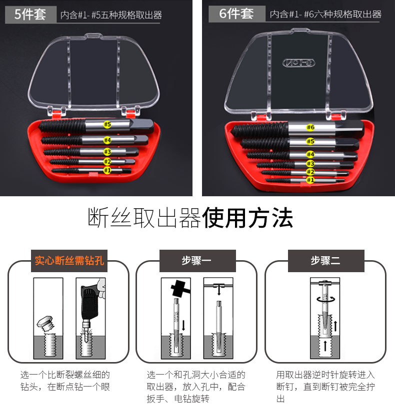 (sandblasted alloy steel) extractor-five-piece set (titanium-plated alloy steel) extractor-five-piece set (nitride alloy steel) extractor-five-piece set (silver single-head alloy steel) extractor-eight-piece