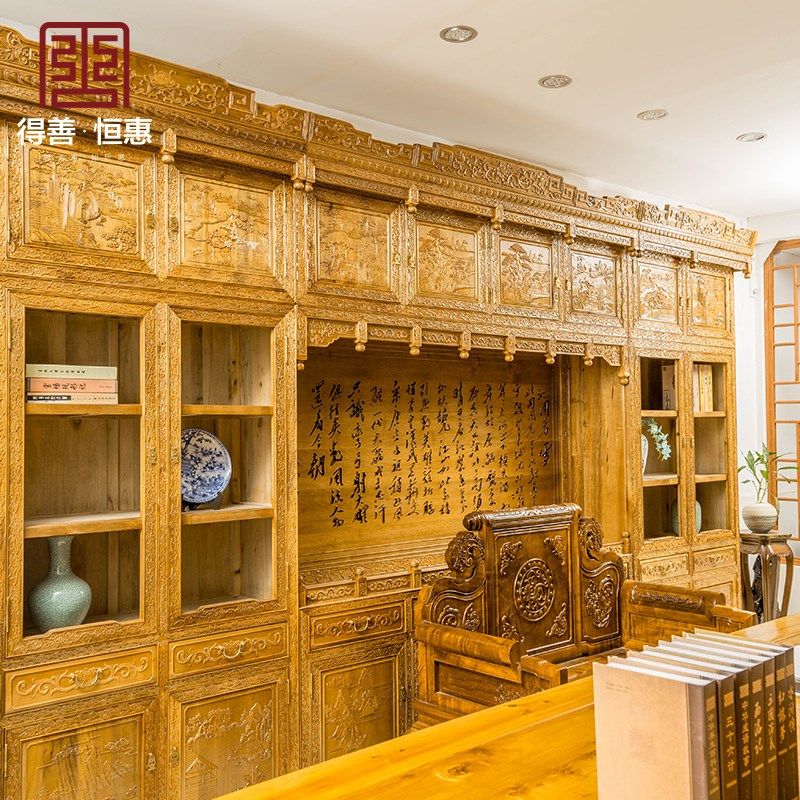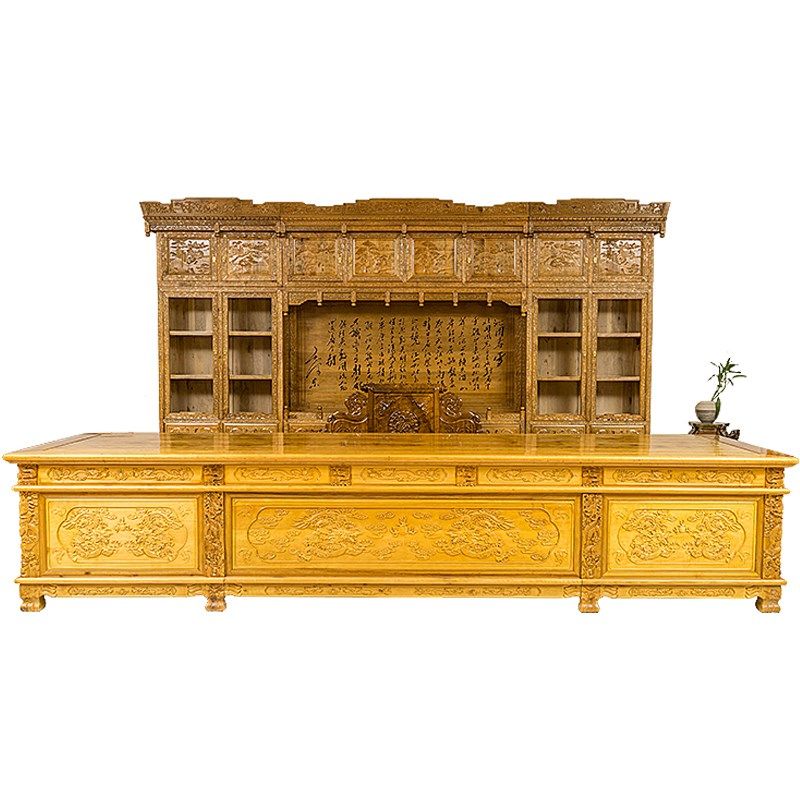Golden Silk Nancarved Dragon Big Desk Gold Silk Nan Throne Two Sets Golden Silk Nana Big Bookcase Wood Rack Fee