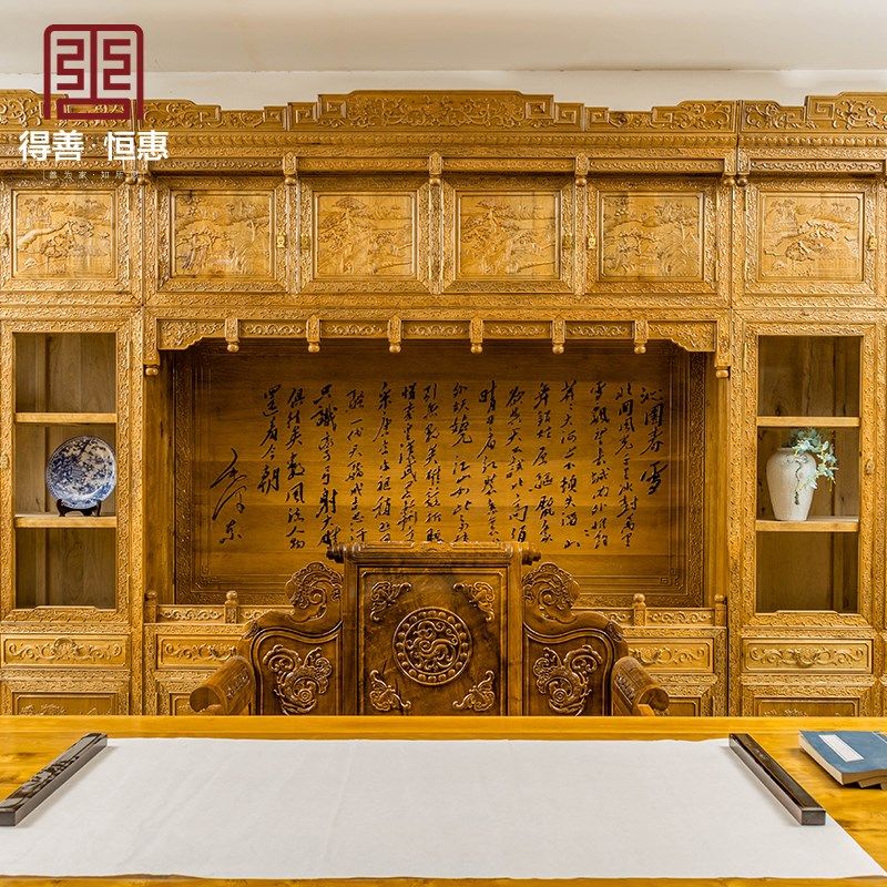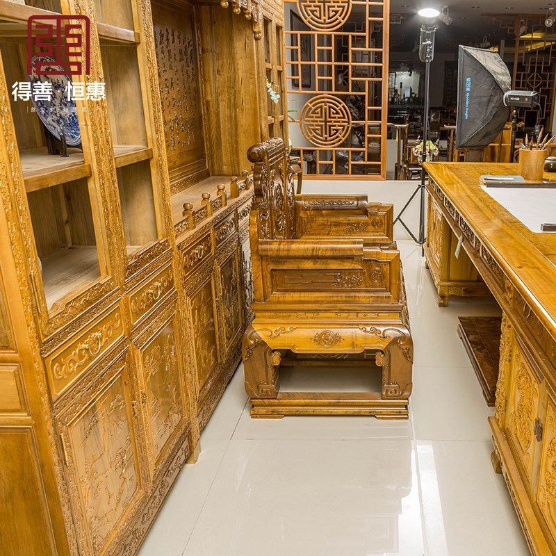 Quality Red Wood Furniture Innate Golden Silk Nam Sculpted Dragon Desk Bookcase Big Throne Combo Minqing Classical Full Solid Wood Office