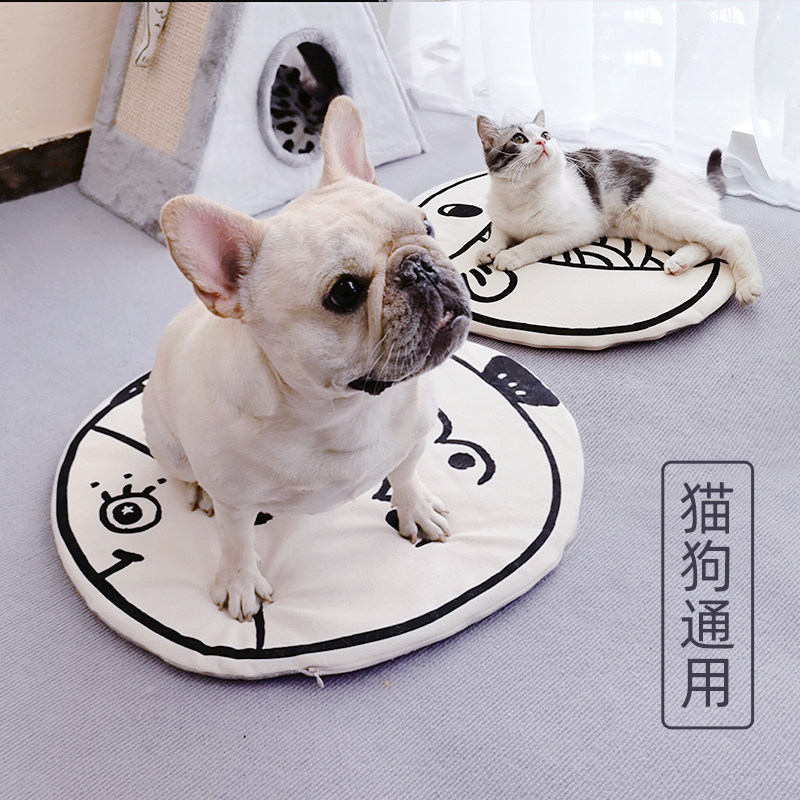 Oval Cat Summer Cool Mat Canvas Cool And No Ice Small Fish Pattern All Season Universal Kennel Dog Mat Small Cat Cowl