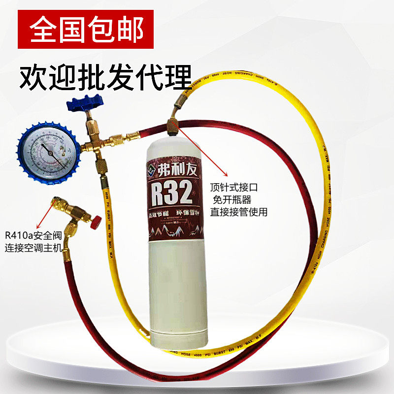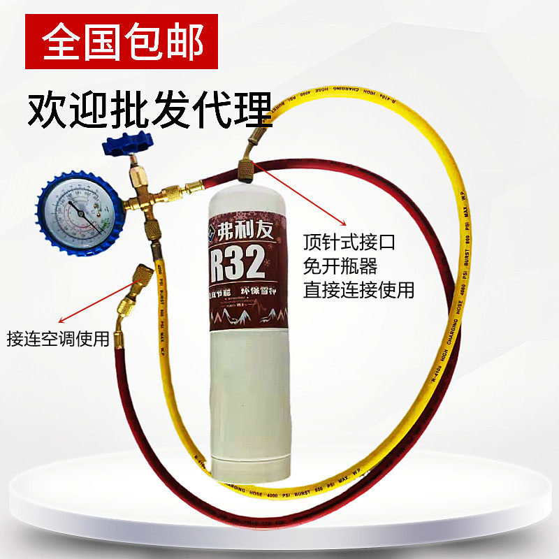 R32 original loaded refrigerant (net weight 500 gr) R32 refrigerant plus fluorine tool with joint R32 refrigerant plus fluorine tool with safety valve car special added fluorine tool fixed frequency conversion refrigerator gaffluorine