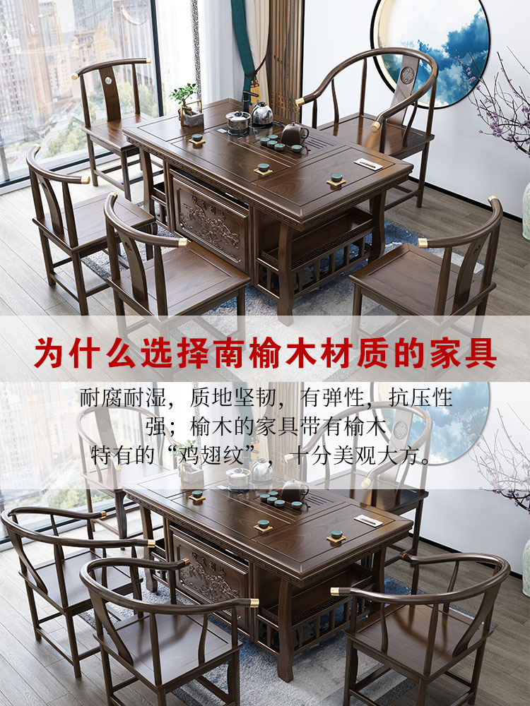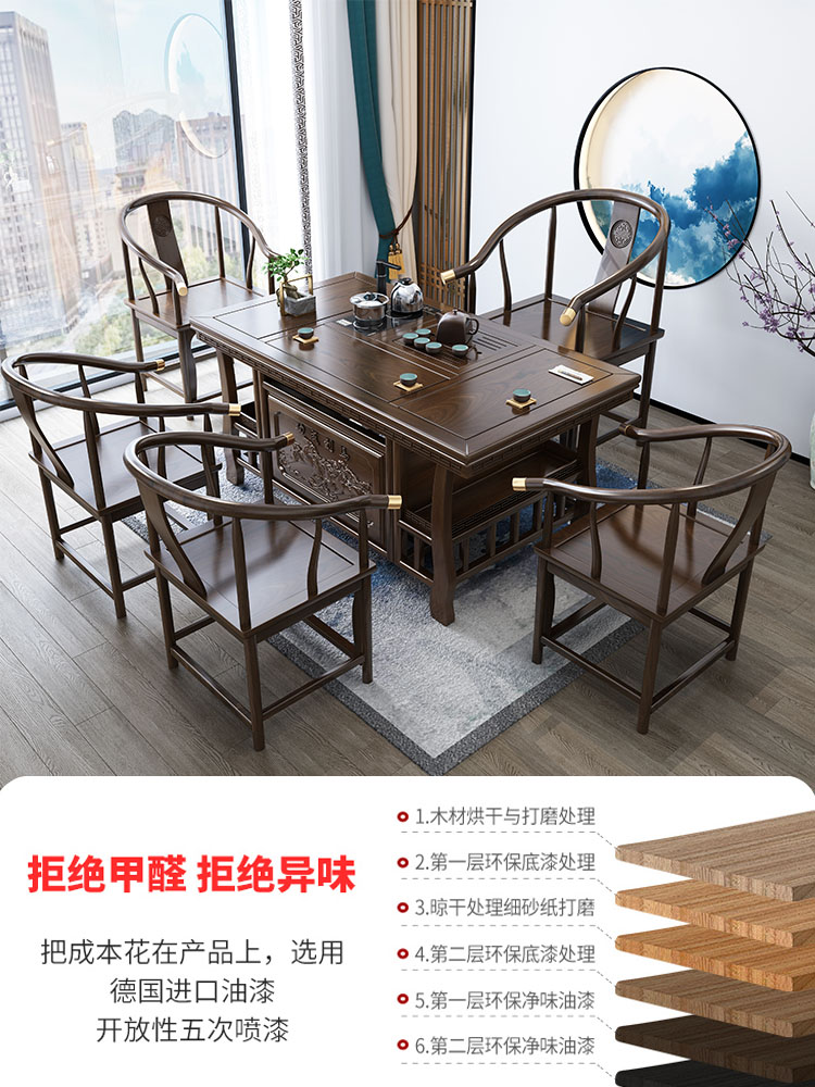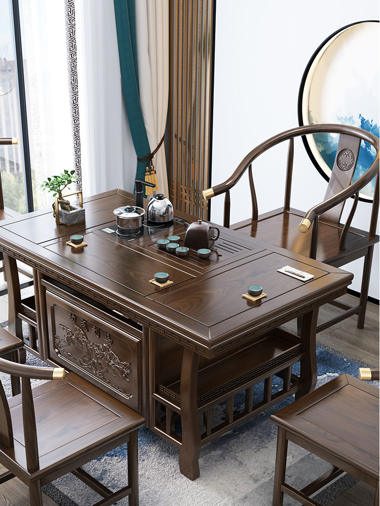 Tea table and chairs Composition Kung Fu tea table minimalist office tea table New Chinese solid wood tea set Set of table One