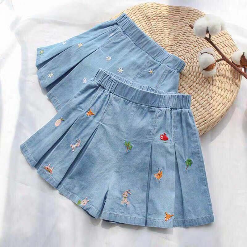 Girl All-cotton Denim Shorts Children CUHK 2023 Short Skirts Pants Summer Casual Trendy Short Skirts Pants Wear Tide-Taobao
