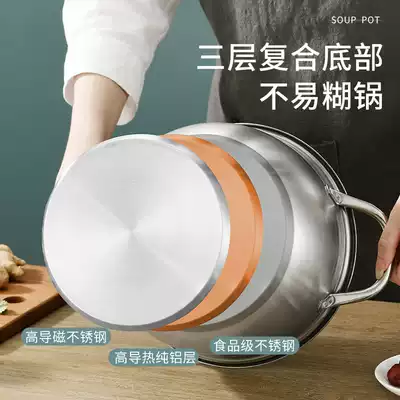Soup pot 304 stainless steel thickened household small cooking pot cooking porridge noodle milk pot Induction cooker gas universal stew pot