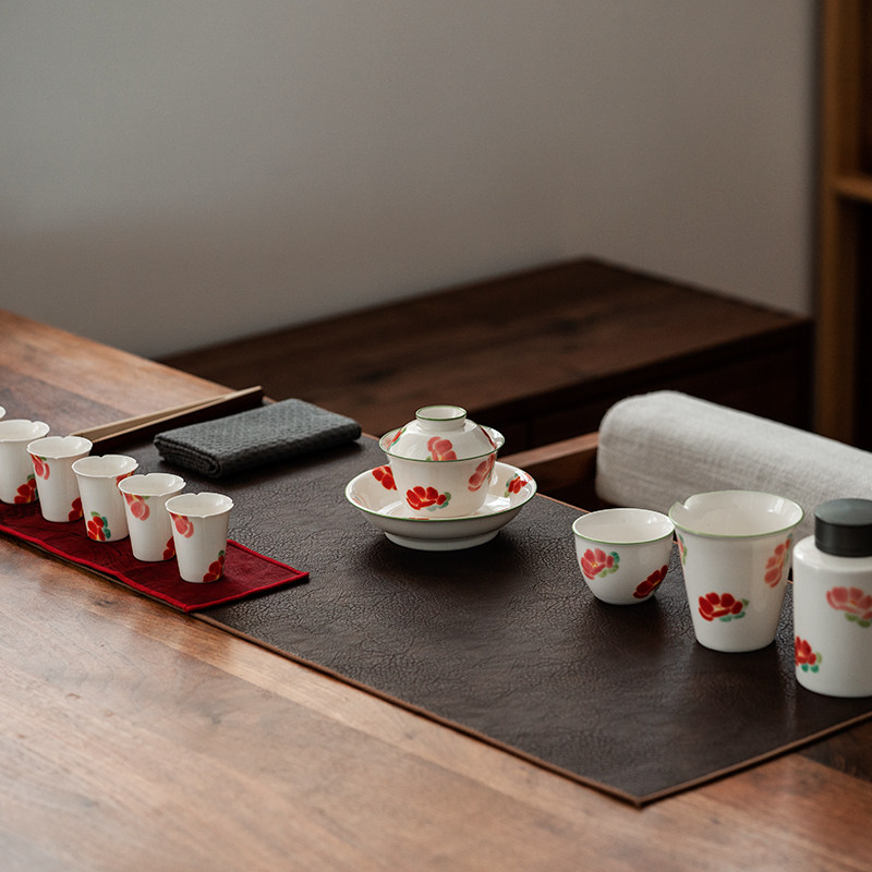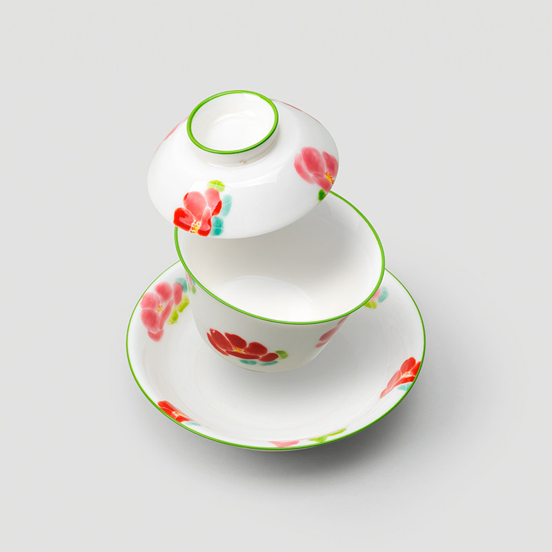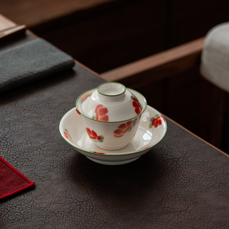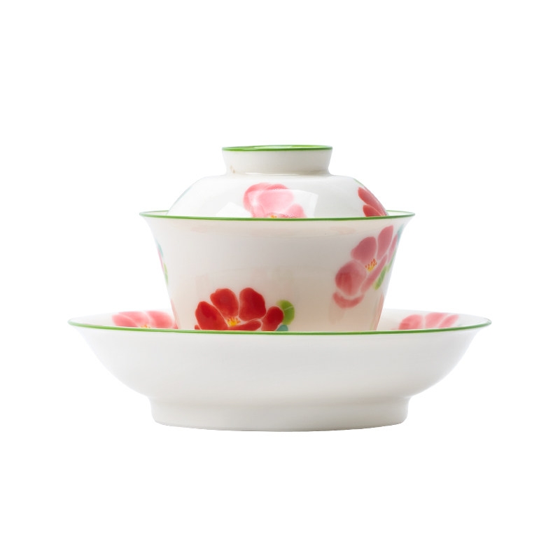 Hand-drawn paste three-way bowl female cup tea bowl three-palace ceramic kung fu tea set Japanese rock tea