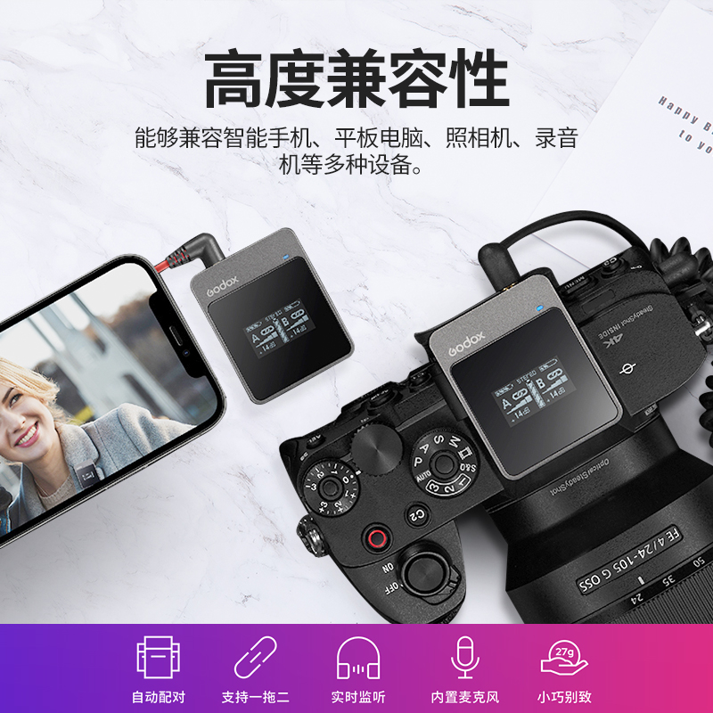 Godox God cow MoveLink one drag two wireless microphone clip collar microphone small bee SLR camera microphone interview breast wheat live mini eat broadcast radio wheat mobile phone vlog Video