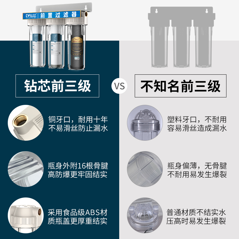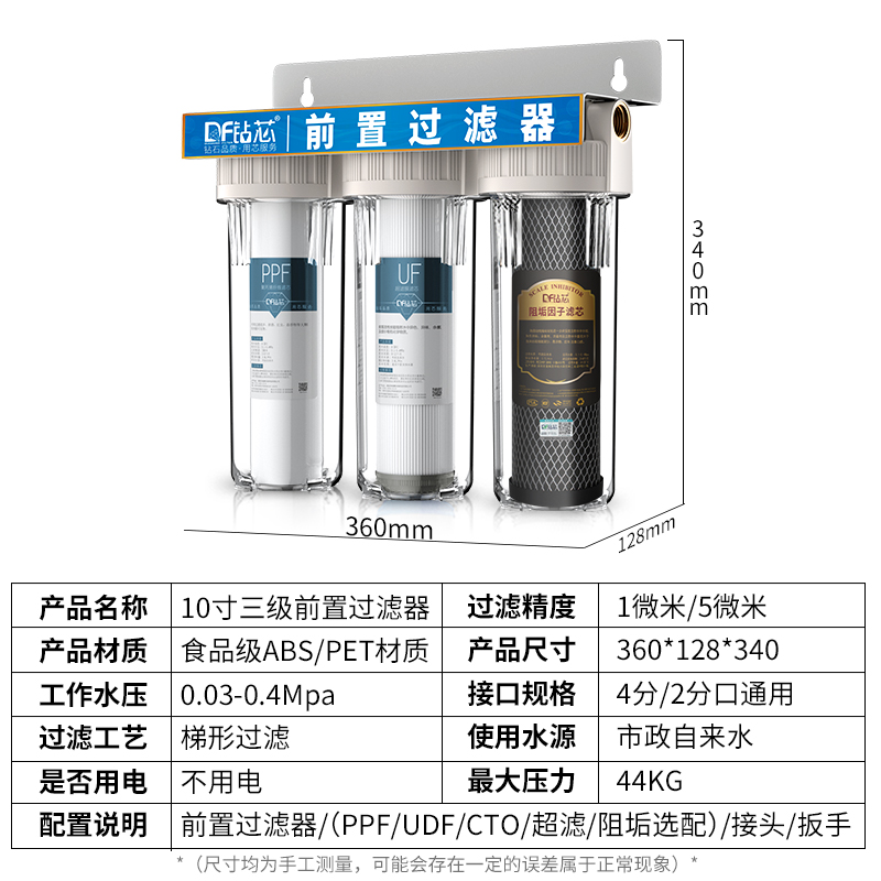 Front water purification filter housekitchen tap water three - inch filter PP cotton filter core copper - cut water purification machine