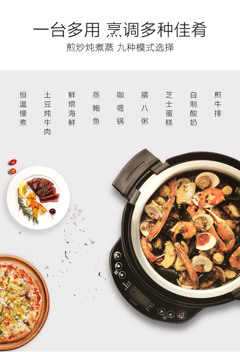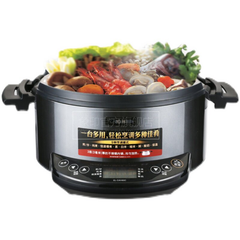 Elephant Print Multifunction Cuisine Electric Pan CAH60C Large Capacity Domestic Hot Pot Fried Stew Boiled White Rice Yoghurt Porridge